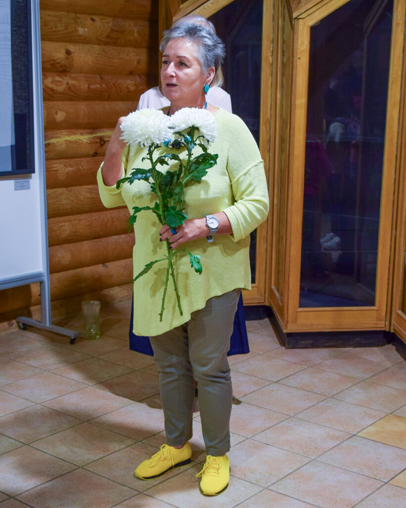 Abas mākslinieces sveica kultūras centra mākslinieciskās daļas vadītāja Vanda Arnta-Laizāne, jo daļa darbu ir apskatāma arī kultūras centrā. Tāpēc katrs var apskatīt darbus abās vietās un salīdzināt.