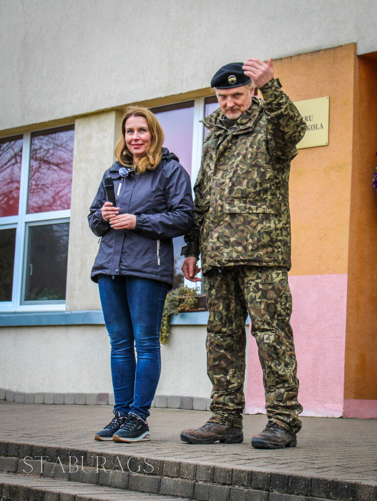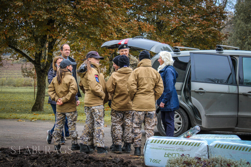 Talciniekus uzrunāja arī kustības aizsācējs producents Lūkass Mairis Marcinkēvičs: “Esiet sveicināti! Sveiciens jaunsargiem, kad patriotiski mēs varam šodien stādīt Bebru pamatskolā augļudārzu, veidojot to ar ziedošām rozēm un augļu kokiem, kas tālāk nesīs augļus. Tas ir arī simboliski — mēs neturam augļus sevī, bet dodam tālāk. Prieks, ka sanākuši vietējie iedzīvotāji, un visi kopā mēs veidosim šo augļudārzu. Tas nav tikai atsevišķiem cilvēkiem, tas ir visam Bebru pagastam.” Ar dziesmu sanākušos uzmundrināja dziedātājs, bijušais operetes mākslinieks Daris Jansons, un pārējie viņam pievienojās.