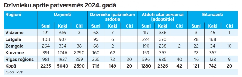 Pērn Latvijā kopumā eitanazēti 883 dzīvnieki. Kurzemē, no kurienes nāca “Libertas” un “Nikas” piemēri, situācija ir katastrofāla — pērn tur iemidzināti 367 kaķi, kas ir gandrīz tikpat, cik adoptēti (397). Šī statistika nepārprotami norāda, lai gan dažas biedrības cīnās par katru dzīvību, kaut kur Kurzemē (un arī citur Latvijā) ir patversmes, kas problēmu risina ar letālu injekciju, klusi un masveidā. Šī analīze parāda, ka problēma ir daudz dziļāka par vienkāršu kaķu skaitu pagrabos. Tā ir sistēmisks haoss likumdošanā, hroniska kontroles trūkuma, sabiedrības bezatbildības un, iespējams, slēptas, statistiski pierādāmas eitanāzijas politikas sajaukums atsevišķos reģionos.
