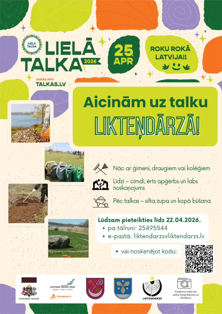Talka Likteņdārzā pulcēs gan brīvprātīgos, gan ģimenes, gan kolektīvus, kuri vēlas sniegt savu ieguldījumu vides sakopšanā un vietas attīstībā. Pasākuma mērķis ir ne tikai praktisks darbs, bet arī kopības sajūtas stiprināšana un sabiedrības iesaiste nozīmīga kultūrvēsturiska objekta uzturēšanā.
