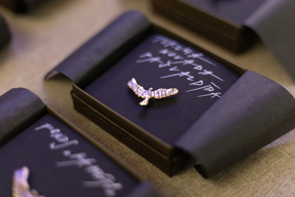 Goda zīmes “Vanadziņš” sudrabā un bronzā īpaši par godu organizācijas jubilejai veidojusi vēsturisko rotu zīmola māksliniece Linda Šikure. Bronzas “Vanadziņu” saņēma cilvēki un organizācijas par nozīmīgu atbalstu “Daugavas vanagiem”, bet sudraba Goda zīmi pasniedza organizācijas biedriem par mūža ieguldījumu un īpašiem nopelniem.