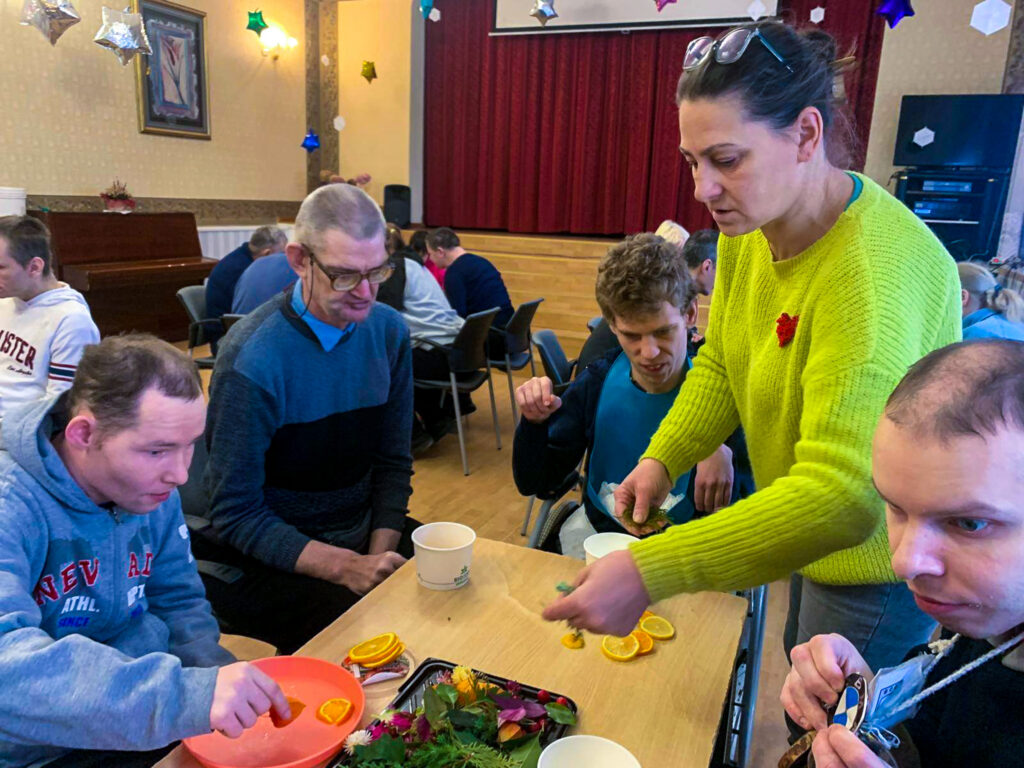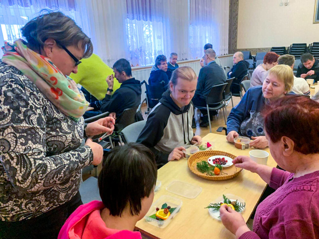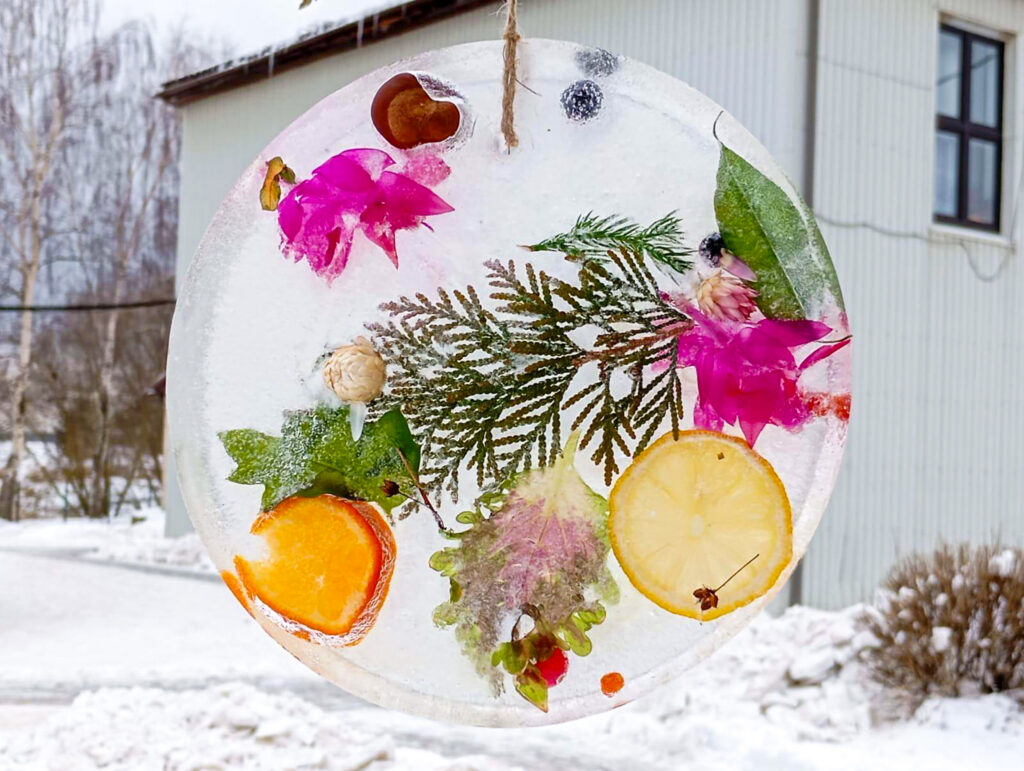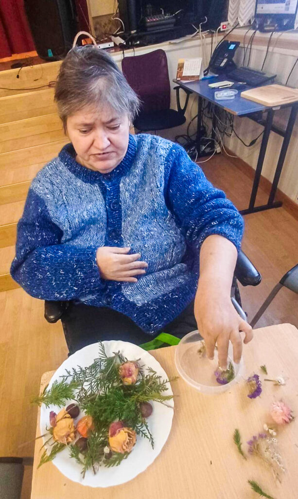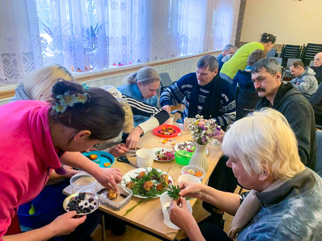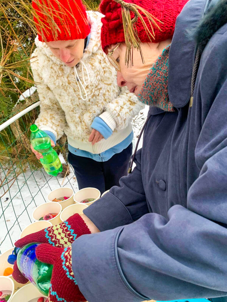 Šonedēļ filiālē “Mēmele” sals kļuva par īstu mākslas sabiedroto. Iedzīvotāji ar lielu azartu un interesi pildīja trauciņos ziedus, zarus un ogas, veidojot katrs savu unikālo kompozīciju. Tās aplēja ar ūdeni un nodeva ziemas, ziemiņas pārziņā, ļaujot salam paveikt savu burvību.