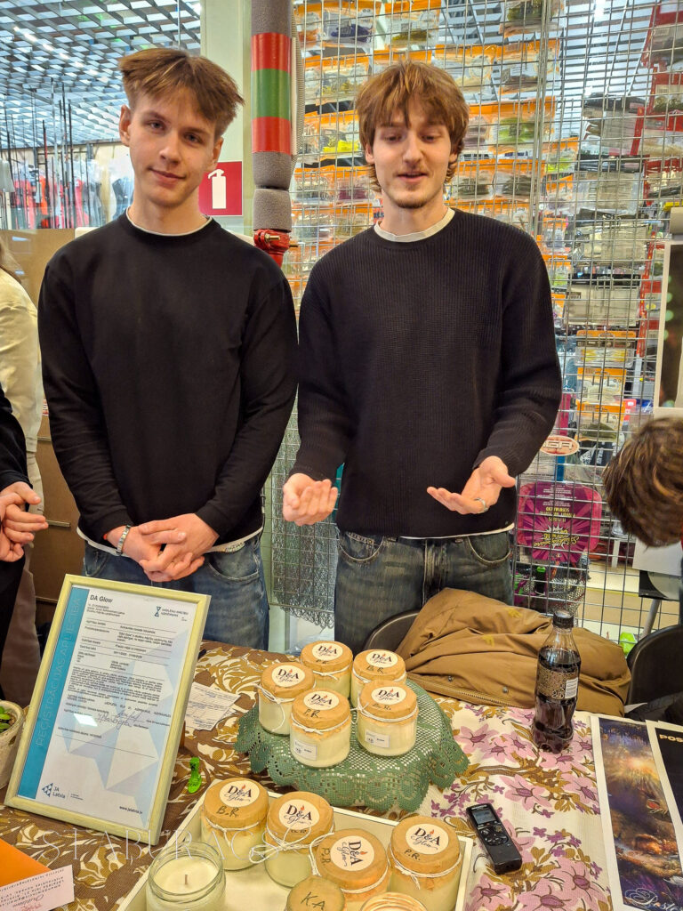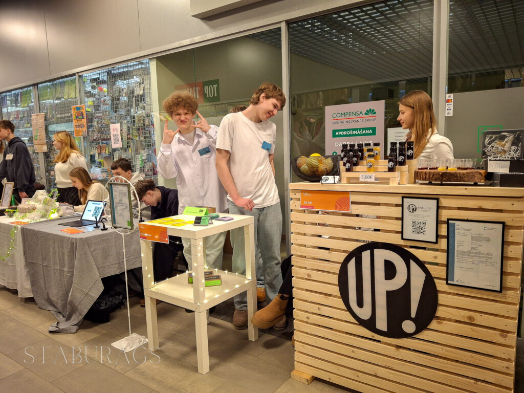 ◆ “Labākais SMU stends” vidusskolu grupā balvu saņēma “UP” no Madonas Valsts ģimnāzijas, kas ražo veselīgus, dabiskus enerģijas šotus jeb dzērienus. Pamatskolu grupā uzvarēja uzņēmums no Kusas pamatskolas “Hand Beauty”, piedāvājot ziepes no kazas piena un glicerīna ziepju masas.