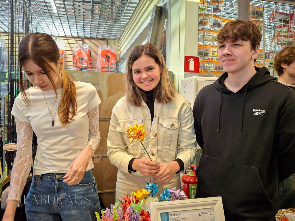 Aizkraukles novada vidusskolas SMU “Oribloom” piedāvāja ziedu pušķus no papīra un kreppapīra. Jauniešiem ziedi patīk, un tas arī rosināja viņus izveidot tos origami tehnikā. Sākumā tiek sagatavoti nepieciešamie materiāli, pēc tam līmēti ziedi. Viens zieds top aptuveni pusstundas laikā, sīkākam ziediņam vajadzīgs ilgāks laiks. Cits Aizkraukles novada SMU — “DA Glow” — izgatavoja sojas vaska sveces. Dāvids un Aleksandrs teic, ka sojas vaskam ir dažas priekšrocības salīdzinājumā ar citām izejvielām, no kā tiek gatavotas sveces — tas nesatur toksiskas vielas, nav kaitīgas veselībai. Sojas vasks deg zemākā temperatūrā, un tas nozīmē, ka svece degs ilgāk un aromāts izdalīsies vienmērīgāk. Sojas vasku, kurš bagātināts ar dažādiem aromātiem, puiši iepildījuši stikla burciņās, kā paši teic, tās atraduši omes pagrabā.