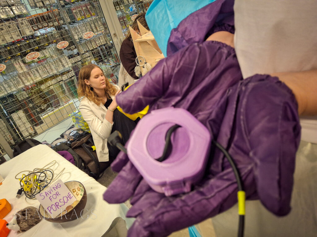 Mazās skrīverietes Adriāna un Sāra no SMU “AkseSuāri” piedāvāja dažādas piespraudes no filca, sākotnēji izmantotas mājās pieejamās izejvielas. Meitenes pašas izveidojušas arī sava uzņēmuma logo. Vienai piespraudītei nepieciešamas vismaz 40 minūtes, dažkārt nepieciešama pat pusotra stunda. Adriānai un Sārai šī ir pirmā piedalīšanās gadatirdziņā.