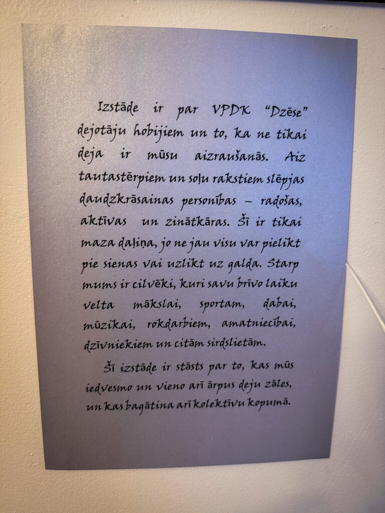 Pirms doties baudīt koncertu, tā apmeklētājiem bija iespēja apskatīt izstādi, kurā izlikti darbi, kas parāda, cik talantīgs ir “Dzēses” kolektīvs. Tās dejotāji bez ikdienas darbiem un dejošanas vēl arī dzied, zīmē, glezno, aizraujas ar rokdarbiem un darina pērlīšu gleznas. “Aiz tautastērpiem un soļu rakstiem slēpjas daudzkrāsainas personības — radošas, aktīvas un zinātkāras. Aizraujas ar sportu, dabu, teātri, dzīvniekiem, amatniecību,” rakstīts izstādes pieteikumā. Turpat līdzās vēl viena izstāde fotogrāfijās, diplomos un pateicības rakstos stāsta par “Dzēses” vēsturi un bagāto kolektīva darbību 21 gada garumā. Fotogrāfijas liecina, ka “Dzēse” uzstājas ne tikai tautas deju koncertos, tā piedalījusies arī teātra izrādēs, rīko “Deju olimpiādi”, iestudē savus teatralizētos priekšnesumus, piedalījusies atpūtas kompleksa “Lido” alus pagraba sezonas atklāšanā un noslēgumā, kāzās aicināti iet čigānos.