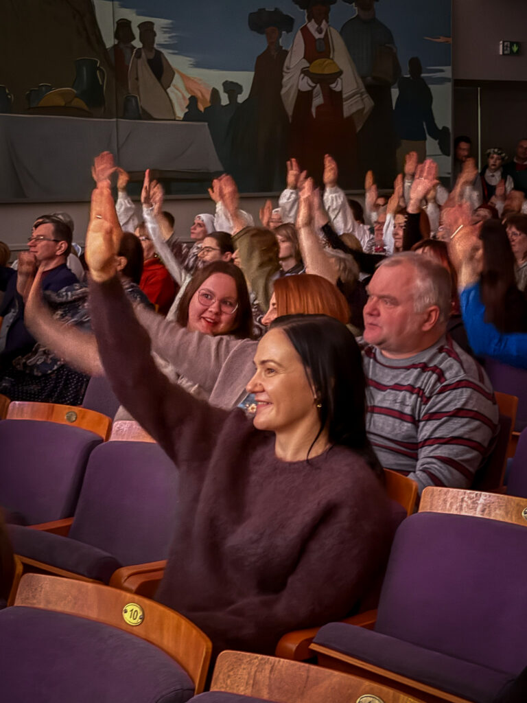 Visus šos gadus deju kolektīvu vada Gita Skudra, kura atklāja, ka ir augusi kopā ar saviem dejotājiem, daudz mācījušies un iedvesmojušies viens no otra. “Esmu ļoti lepna, ka jūs esat mani dejotāji. Mēs tik daudz gadus jau esam kopā. Nevienu mirkli neesmu nožēlojusi to brīdi, kad piekritu vadīt šo kopu. Varbūt vienīgi žēl ir par to, ka nepiekritu vadīt vidējās paaudzes deju kolektīvu jau ātrāk, jo man likās — kā es tik jauna varēšu vadīt un mācīt dejotājus, kuri ir vecāki par mani. Kopā ar jums piedzīvoti tik daudz brīnišķīgi gadi un notikumi. Mācos no jums pacietību, atbildību, mani fascinē jūsu darbaspējas, humora izjūta,” koncerta izskaņā, pasniedzot ziedus saviem dejotājiem, sacīja kolektīva vadītāja.