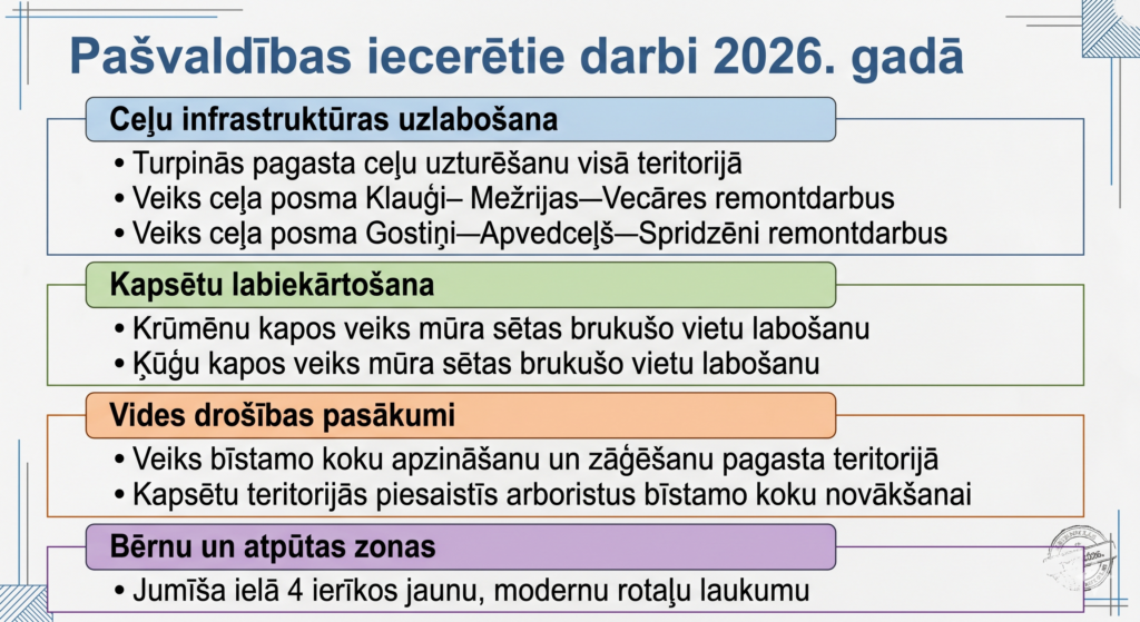 Runājot par pagasta kapsētām, Giedre Zvirgzdiņa atzina, ka tās turpina uzturēt kārtībā, bet problēmas joprojām rada cilvēki, kuri nešķiro atkritumus, visu sametot vienā vietā. Tas rada nekārtību un papildu darbu citiem.