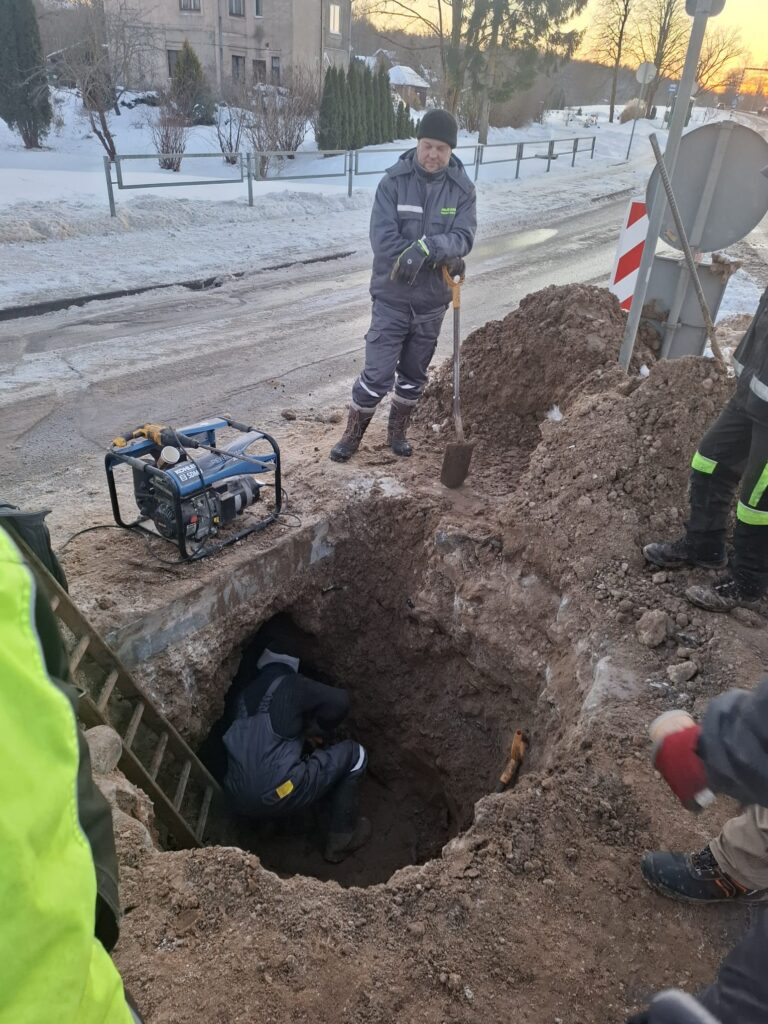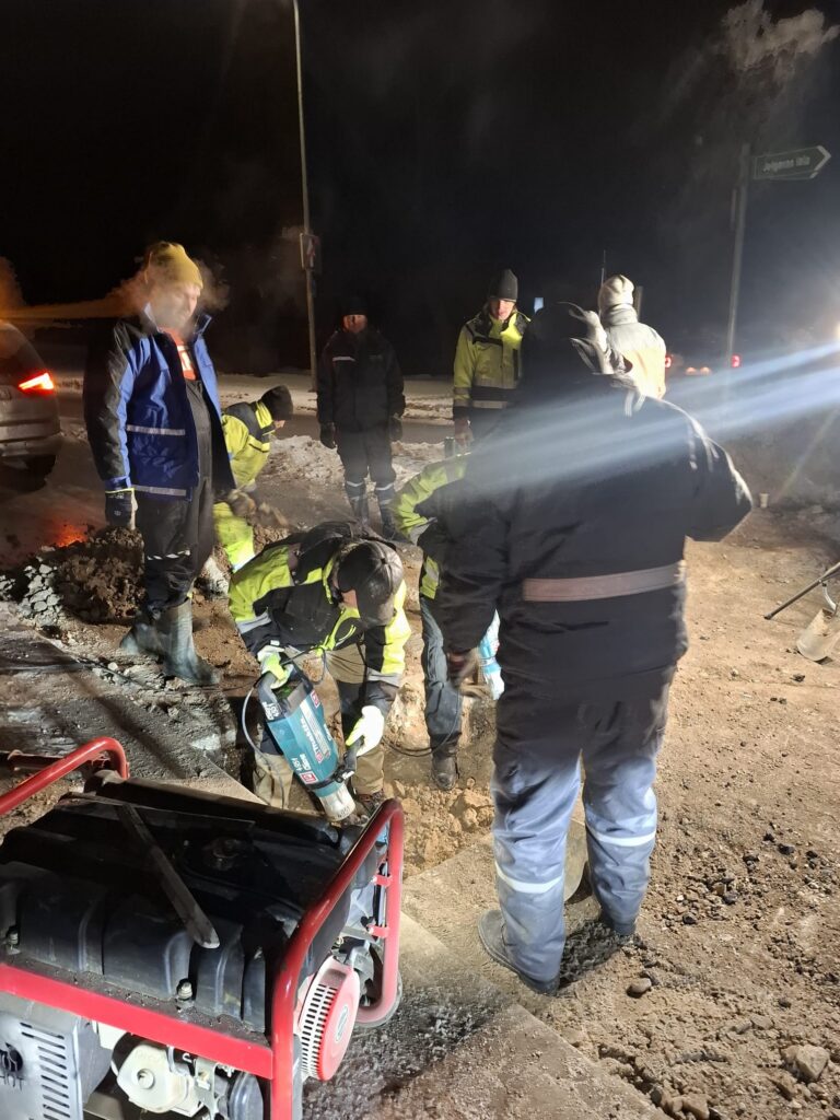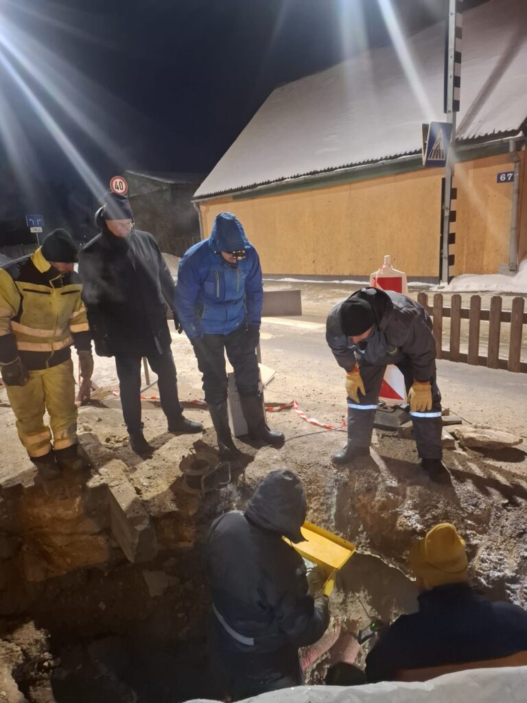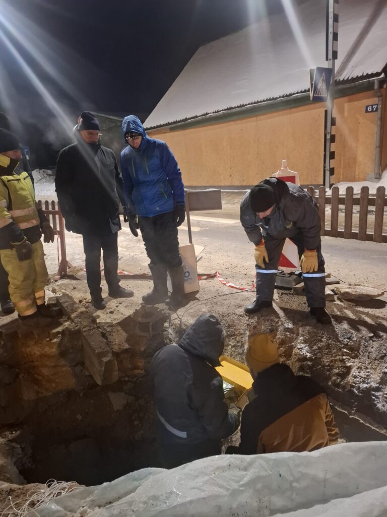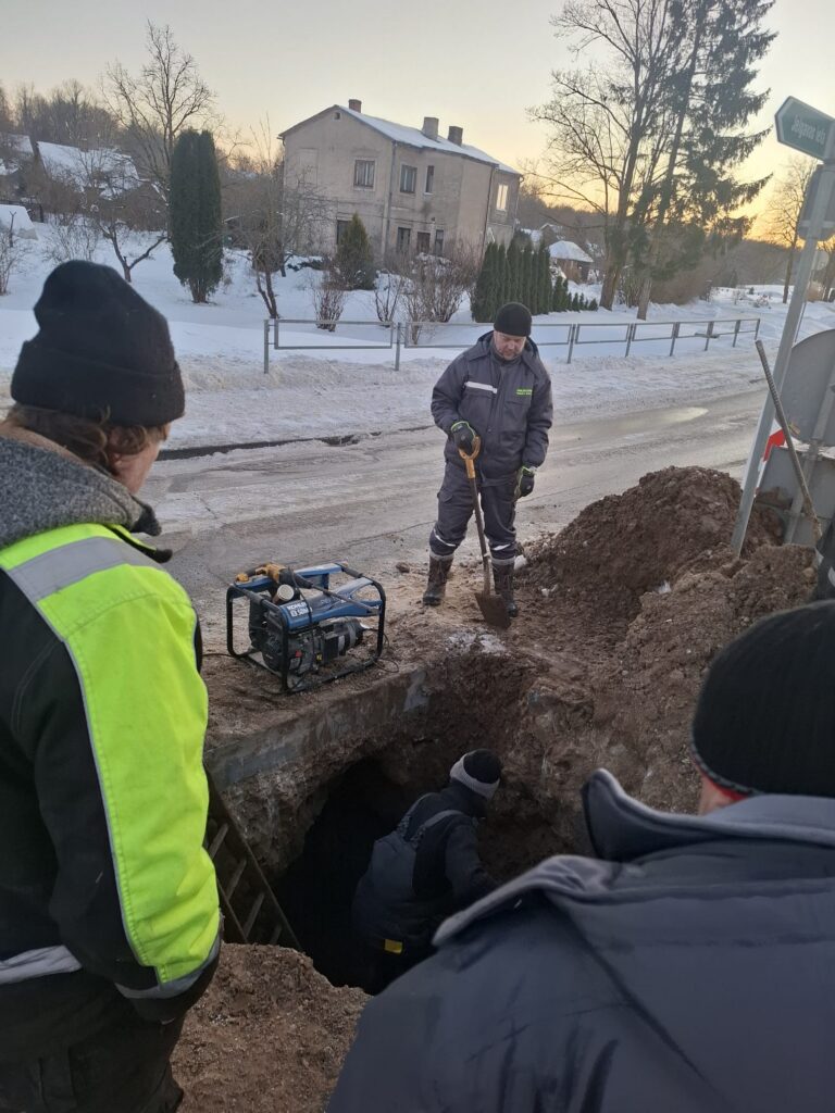 Jaunjelgavā komunālās nodaļas vīri stindzinošā salā strādā dienu un nakti, lai novērstu avāriju ūdensapgādes sistēmā (1)