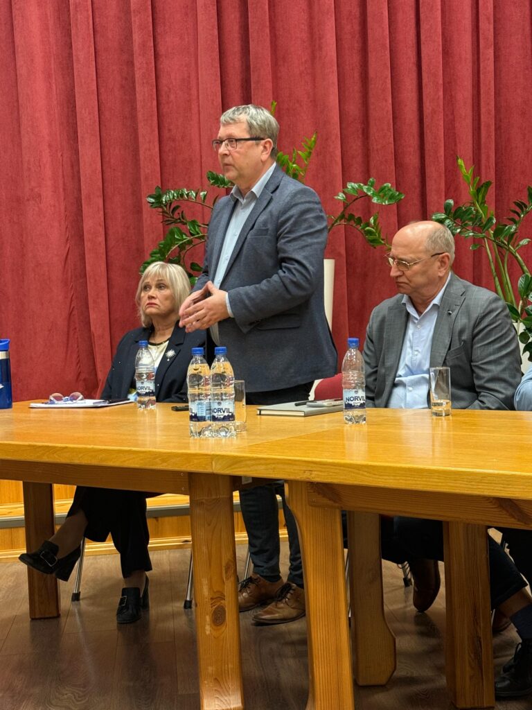 NOVADA domes priekšsēdētāja vietnieks Dainis Vingris (vidū) iedzīvotājus aicināja aktīvi iesaistīties līdzdalības budžeta konkursā.