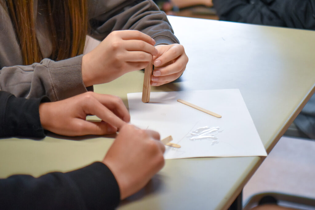 K. Dzelzītis, tiekoties ar Aizkraukles novada vidusskolas audzēkņiem, izmantojot saldējuma kociņus un līmi, veidoja kompozītmateriālus, kurus pēc tam eksperimentā lauza, pārbaudot to izturību. Ar lektora palīdzību skolēni izveidoja spēka plecu un, darbojoties ar vienu svaru dažādos attālumos no parauga, izdarīja spiedienu uz to.