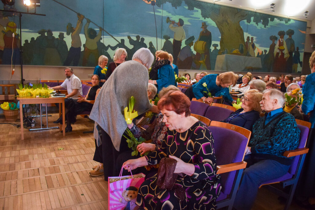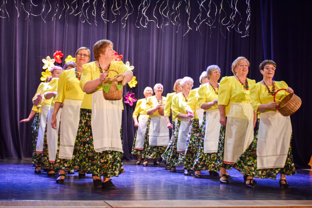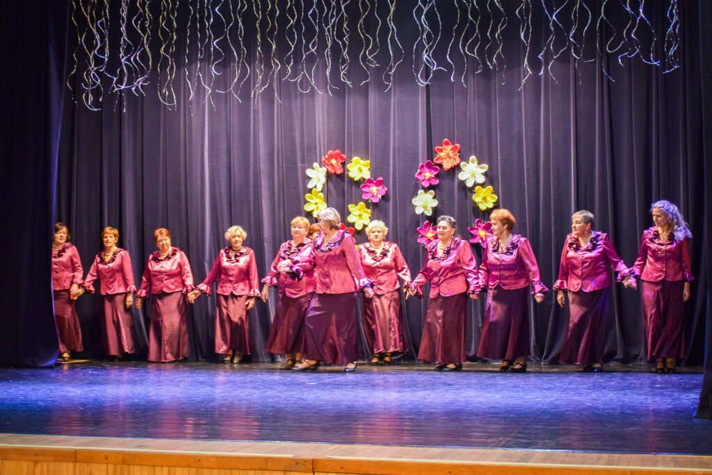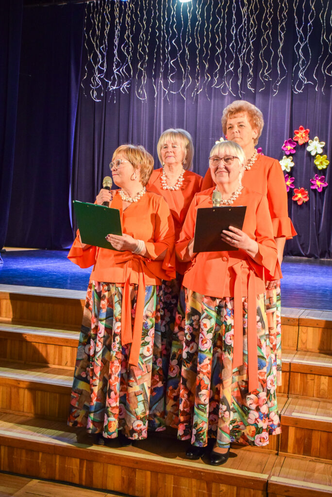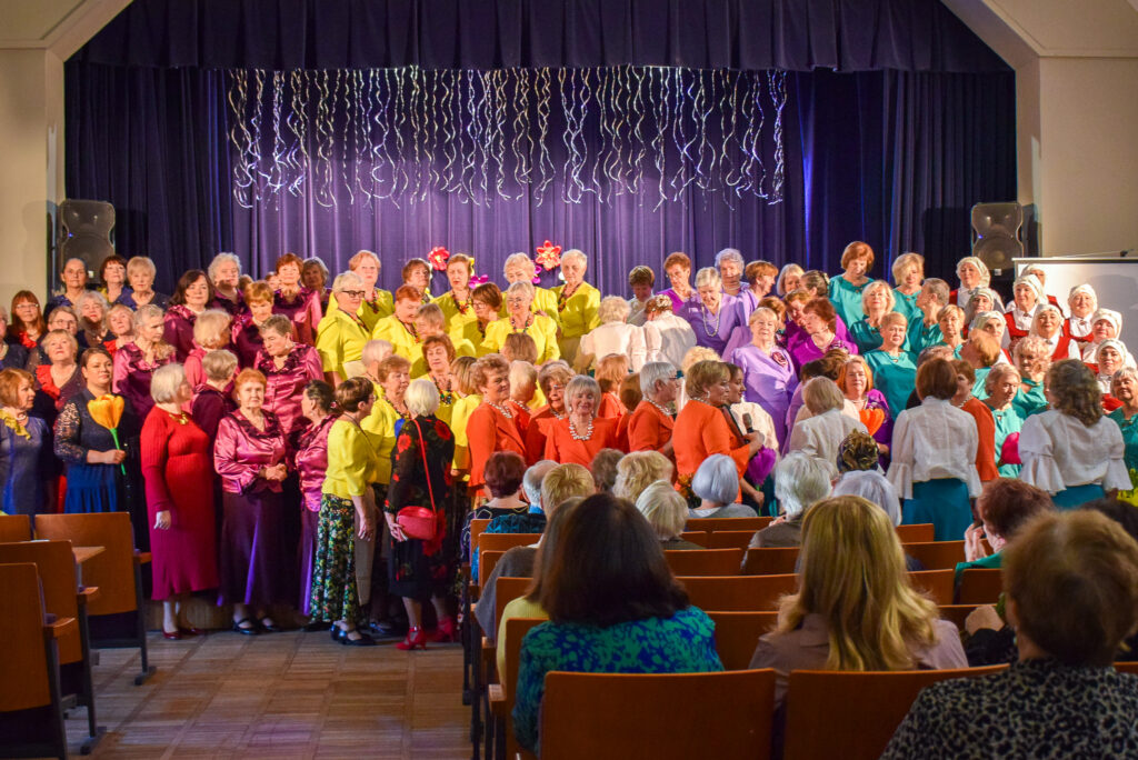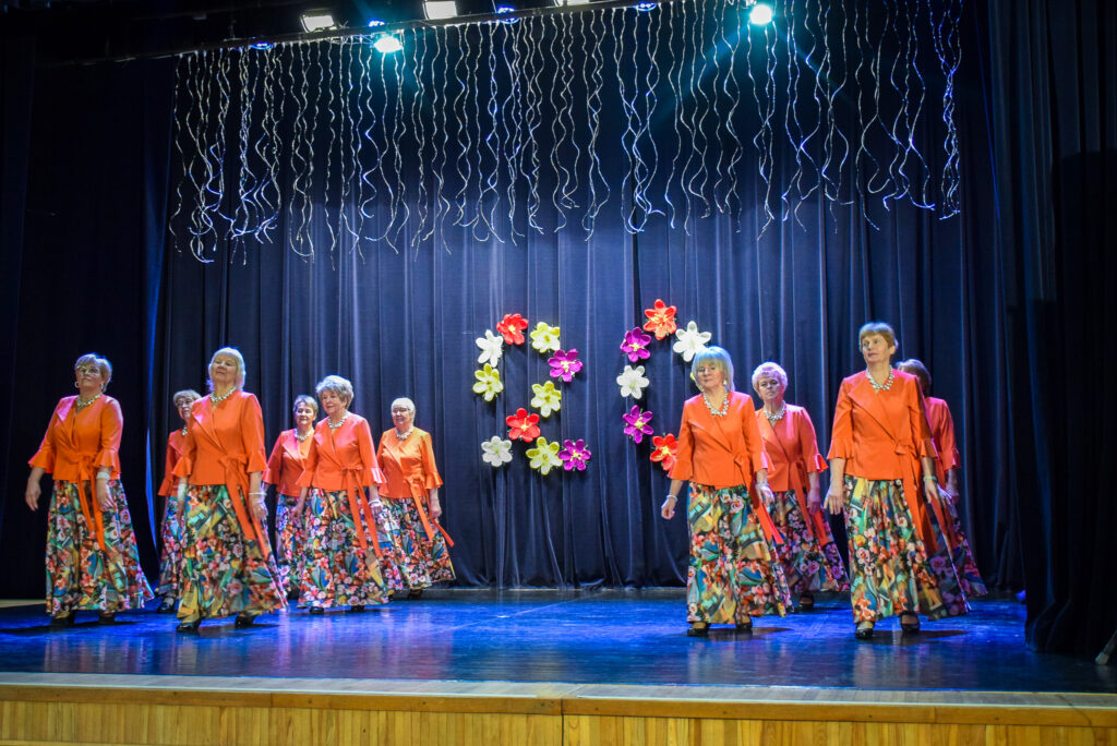 Kopā ar jubilārēm uz skatuves sanāca draugu kolektīvi — “Vīzija” no Jaunjelgavas, “Junda” no Kokneses, “Sniega roze” no Siguldas, “Vijas” no Ikšķiles, “Madara” no Salaspils, “Astras” no Ogres un “Vēlreiz” no Bauskas.