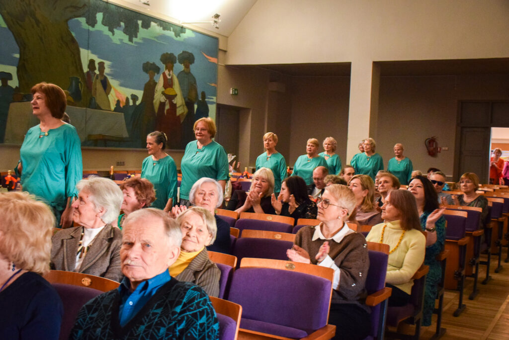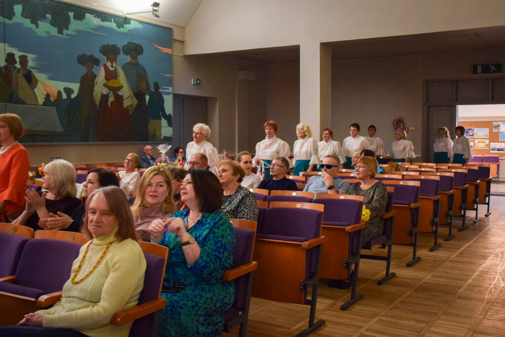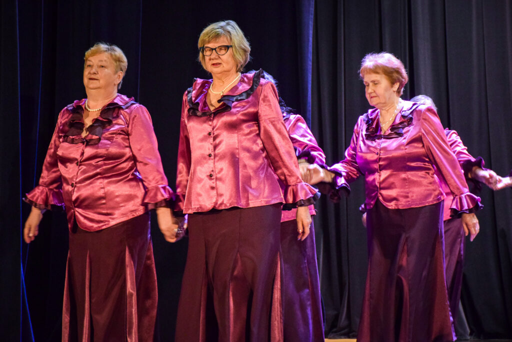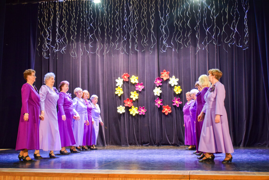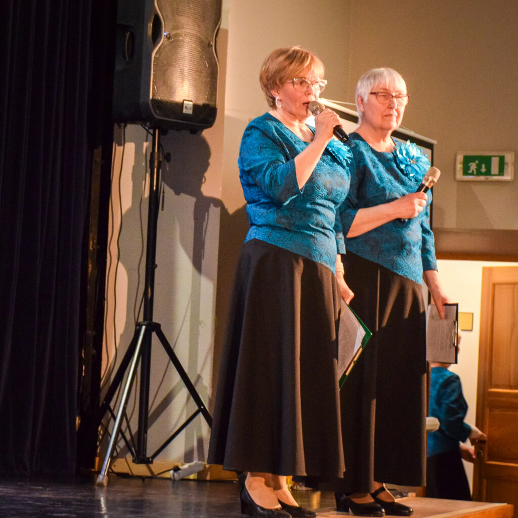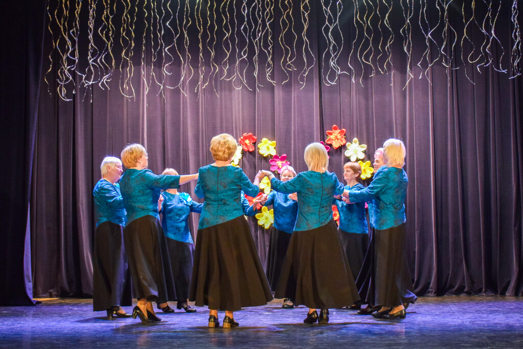 Kopā ar jubilārēm uz skatuves sanāca draugu kolektīvi — “Vīzija” no Jaunjelgavas, “Junda” no Kokneses, “Sniega roze” no Siguldas, “Vijas” no Ikšķiles, “Madara” no Salaspils, “Astras” no Ogres un “Vēlreiz” no Bauskas.