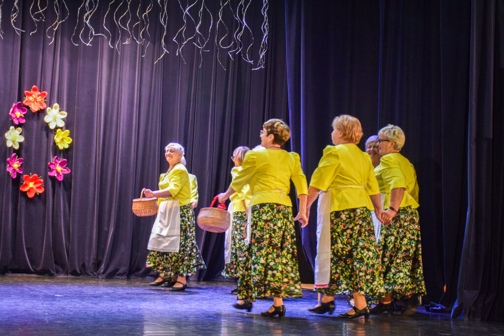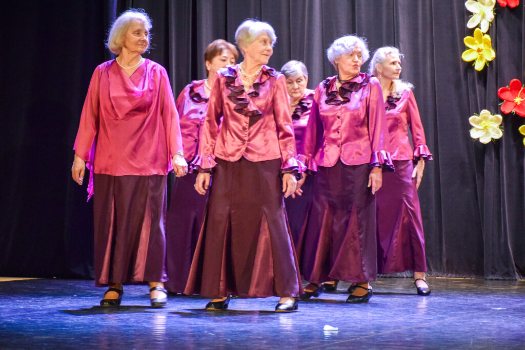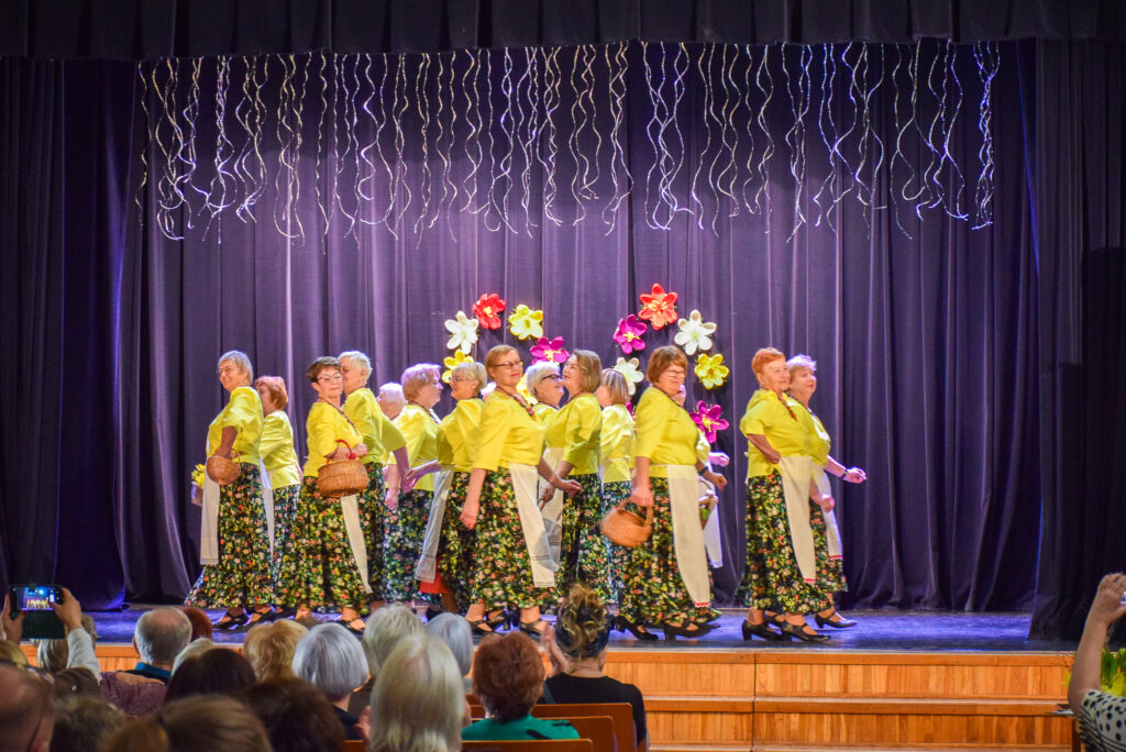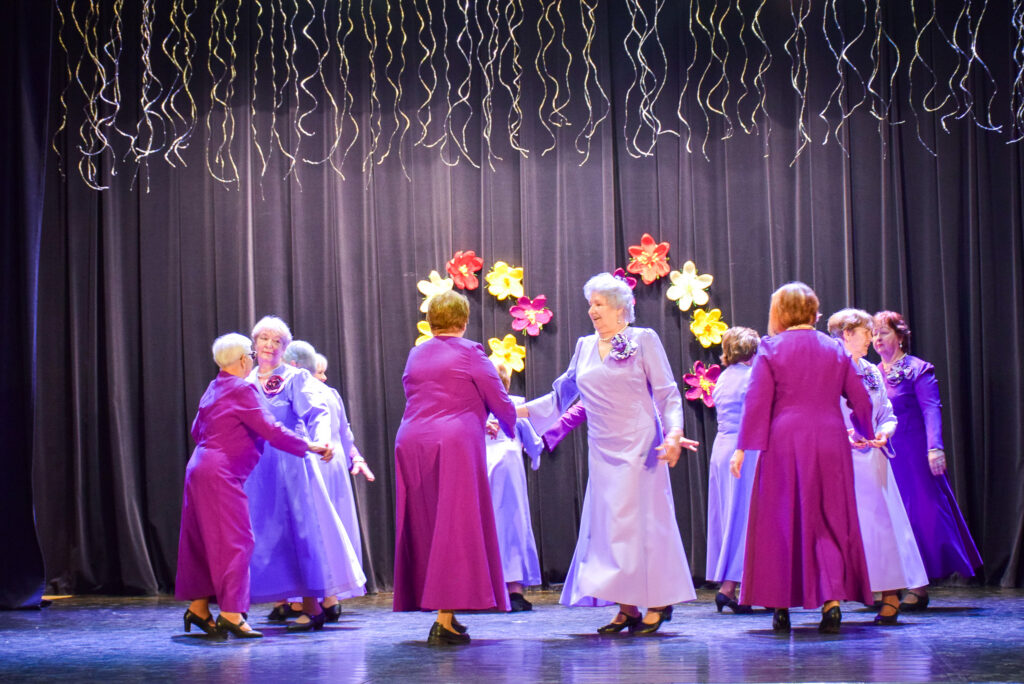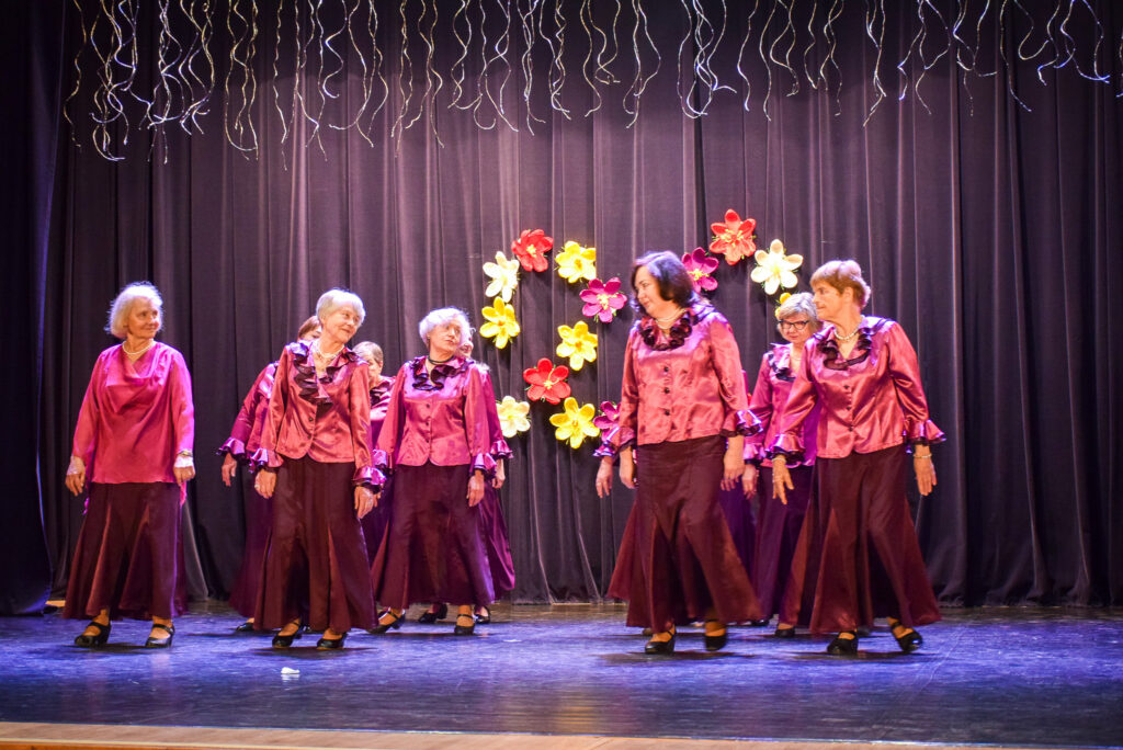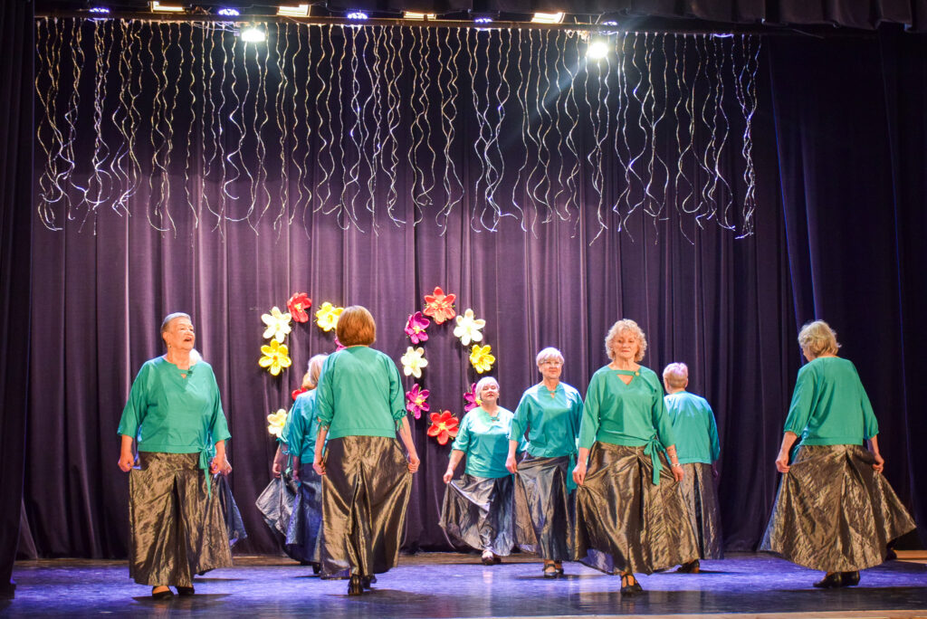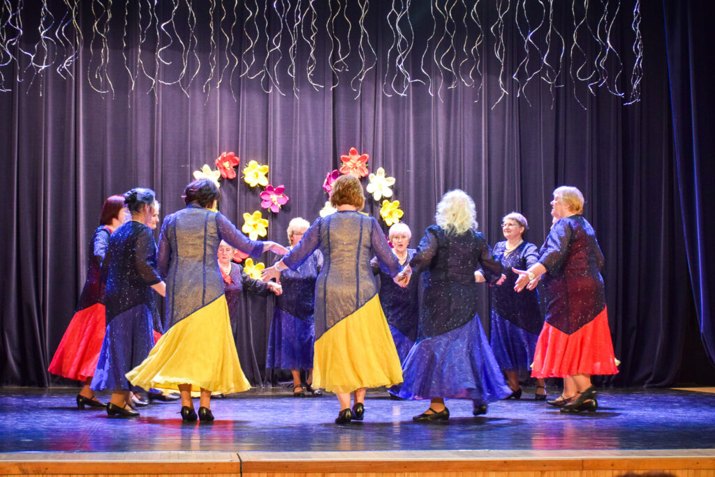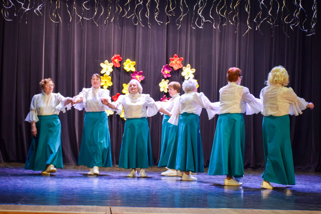 “Šodien visi ir krokusu krāsās — pavasarīgi, koši un dzīvības pilni. Cauri sniegiem laužas pirmie zaļumi kā dzirksteles pavasarī, kā cerīgs sapnis pēc ziemas, kā pavasara sirdspuksti. Tādas šodien ir “Aivas” dāmas,” savas dejotājas raksturoja kopas vadītāja Tatjana Petrovska.