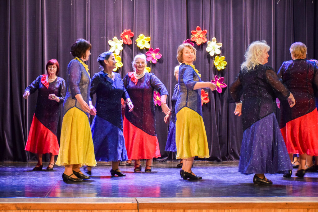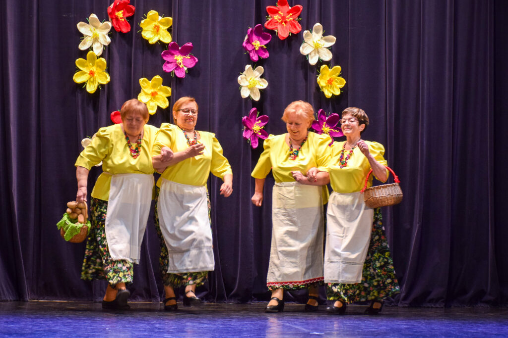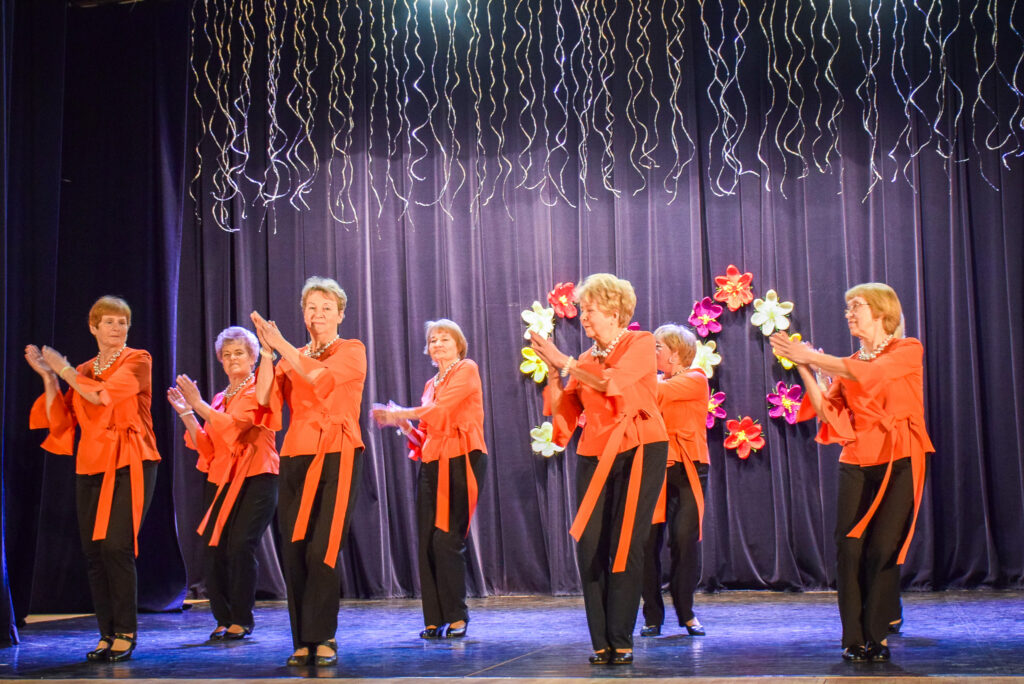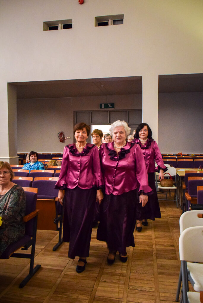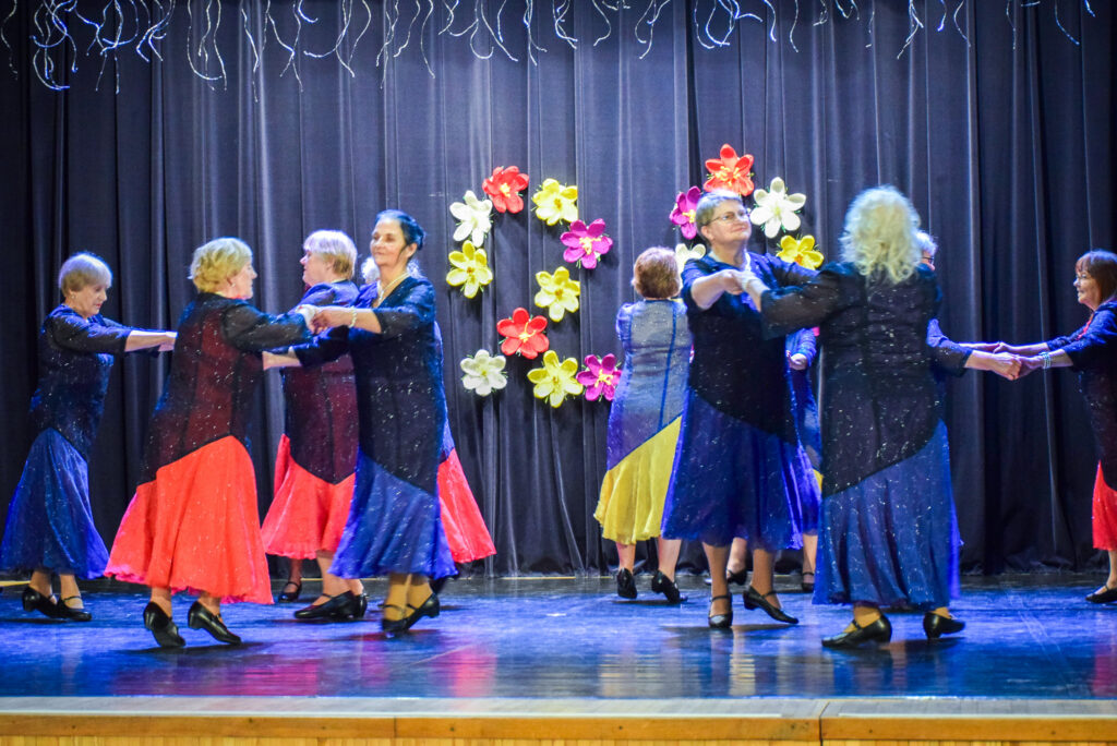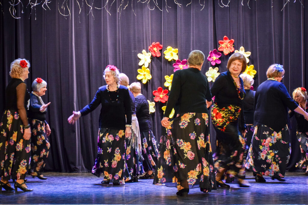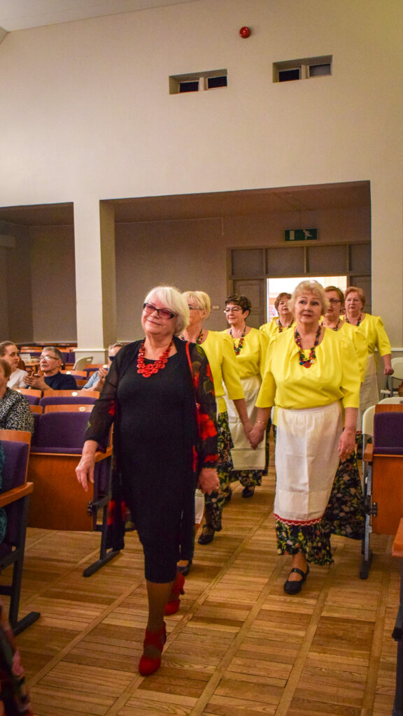 “Šodien visi ir krokusu krāsās — pavasarīgi, koši un dzīvības pilni. Cauri sniegiem laužas pirmie zaļumi kā dzirksteles pavasarī, kā cerīgs sapnis pēc ziemas, kā pavasara sirdspuksti. Tādas šodien ir “Aivas” dāmas,” savas dejotājas raksturoja kopas vadītāja Tatjana Petrovska.