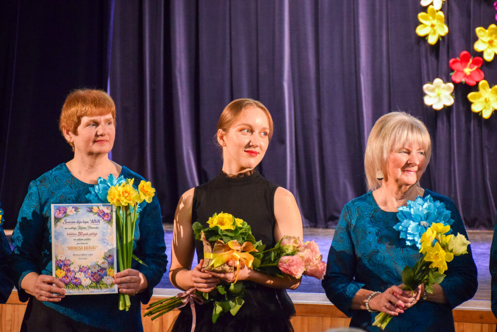 Sirsnīgs, krāšņs un emocijām piepildīts bija koncerts “Krokusu krāsās” Skrīveru kultūras centrā, kur senioru deju kopa “Aiva” svinēja 20 gadu jubileju. Uz skatuves kā pavasara krokusi uzplauka gan pašas jubilāres, gan draugu kolektīvi.