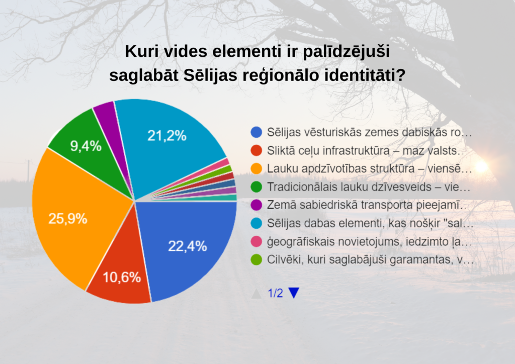 Ceturtā daļa jeb 26,7% šo dzīvošanu “salās” minējuši arī kā galveno elementu, kas palīdzējis saglabāt Sēlijas reģionālo identitāti. Tam pievienojas 20,9% atbilžu, norādot, ka identitāti ļāvusi saglabāt pati Sēlijas daba – meži, purvi, pauguri un applūstošas pļavas, kas dzīvošanai un lauksaimniecībai derīgo zemi sadala nelielās “salās”. Savukārt 22,1% min, ka Sēlijas vēsturiskās zemes dabiskās robežas – Daugava, Taurkalnes mežu masīvs, robeža ar Baltkrieviju un Lietuvu – ir tās, kas ļāvušas noturēties novada savpatībai.
