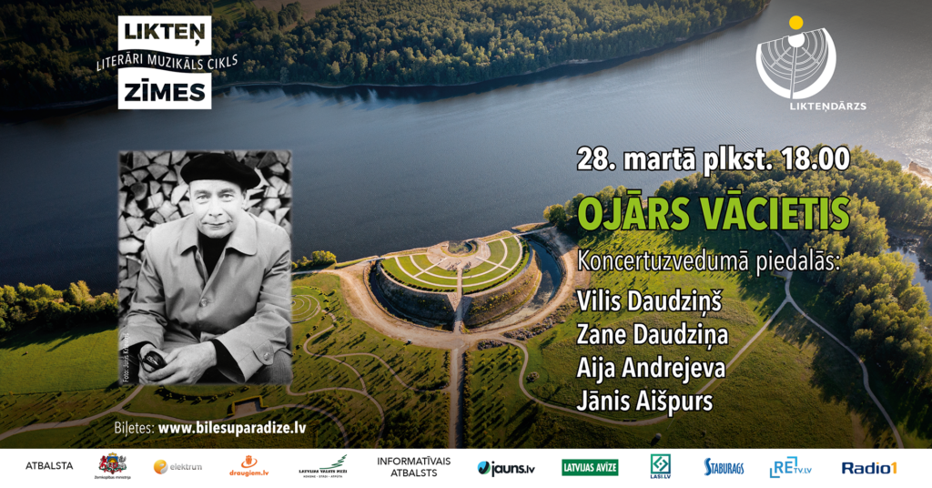 Jau šī gada 28.martā Likteņdārzs atsāk literāri muzikālu koncertuzvedumu ciklu “Likteņzīmes”, un tā ietvaros paredzēti pieci saturīgi, iedvesmojoši koncerti, kuros būs iespēja sajust, saklausīt un izdzīvot Latvijas izcilo mākslinieku Ojāra Vācieša, Vizmas Belševicas, Ārijas Elksnes, Leona Brieža, Olafa Gūtmaņa, kā arī IGO darbus, – tie skanēs dziesmās, noskaņās, dzejoļos un mūziķu pārdomās. 28.martā plkst.18.00 “Likteņzīmes. Ojārs Vācietis.”