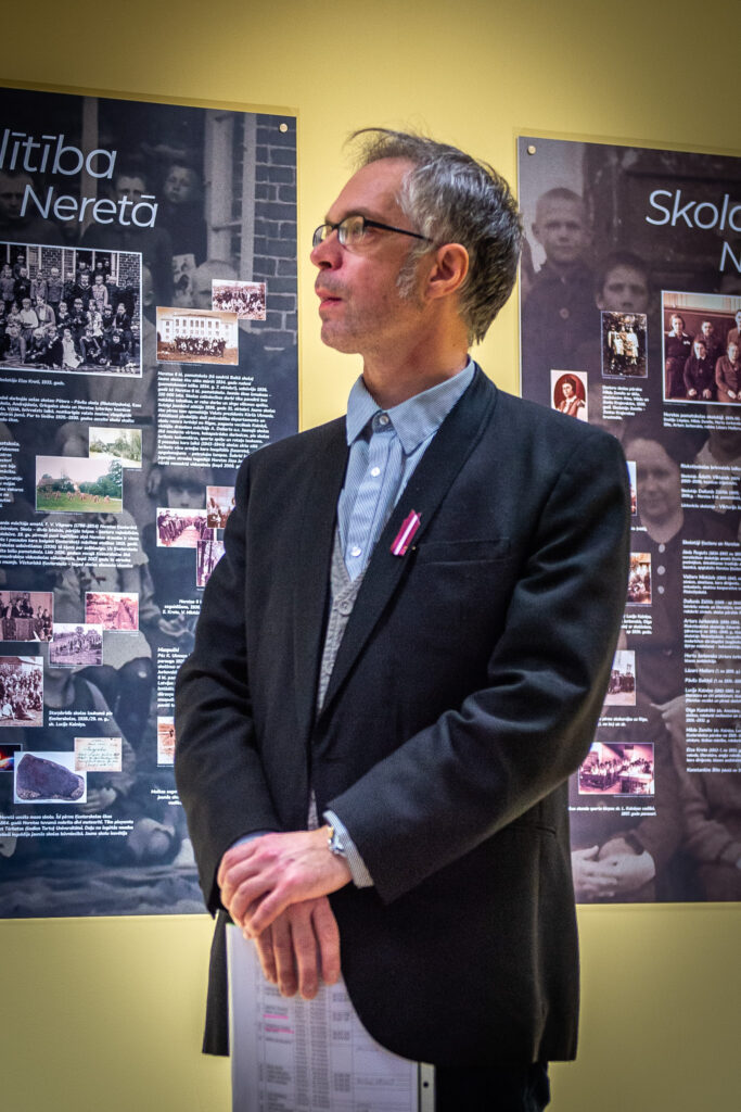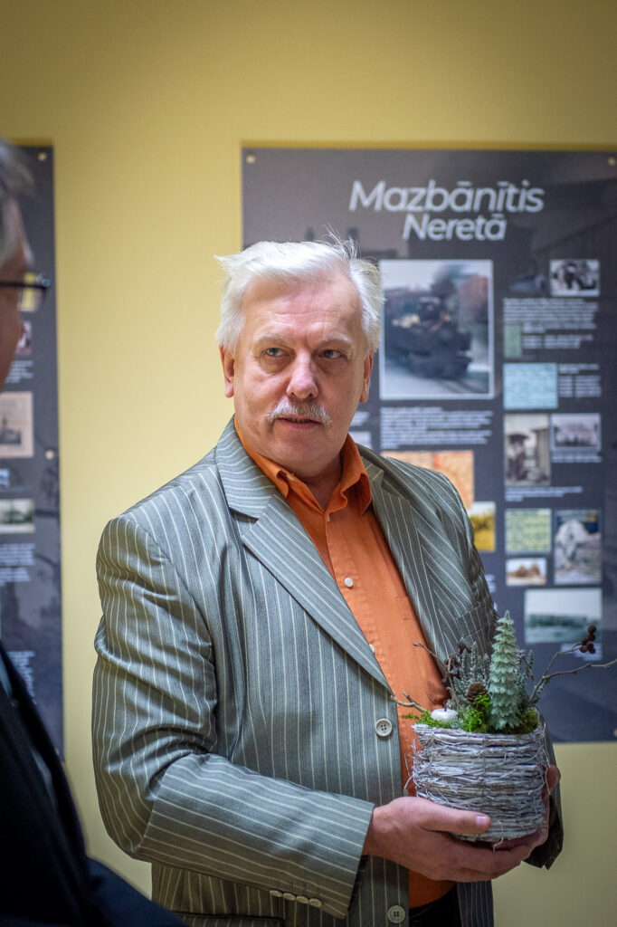 Valts Apinis, uzrunājot klātesošos, neslēpa, ka ekspozīcijas tapšanas process bijis emocionāli sarežģīts. “Kad radās ideja par ekspozīciju, es biju burtiski tupikā, neziņā un izmisumā,” atklāti atzina muzeja vadītājs, piebilstot, ka process līdzinājies “glābšanas misijai” .