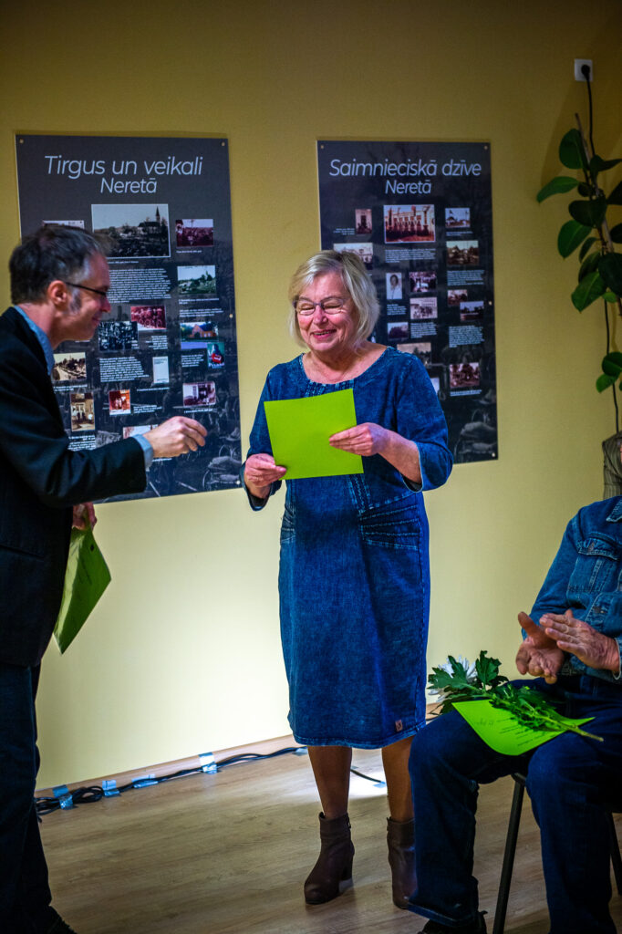 Pasākumā vairākkārt izskanēja doma, ka lieli darbi nav paveicami vienatnē. Muzeja vadītājs īpašu pateicību veltīja tiem 46 cilvēkiem, kuri papildinājuši muzeja krājumus. Zālē tika godināts kolekcionārs Konrāds Degro, kura ieguldījums Neretas vēsturē ir nenovērtējams – viņš saglabājis unikālas laikmeta liecības, tostarp fotogrāfijas pie vēsturiskā Mazbānīša un vienu no pirmajiem Neretas radio aparātiem.