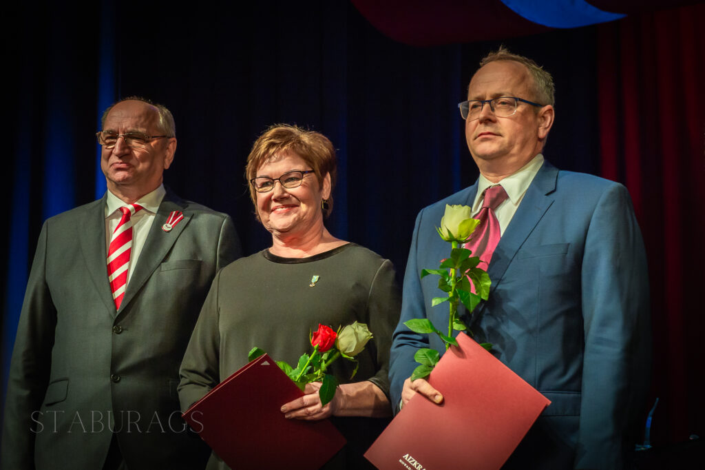 Augstāko novada apbalvojumu saņēma aizkrauklieši Ināra Gaile (no kreisās), Einārs Zēbergs un Dzintra Cepure.