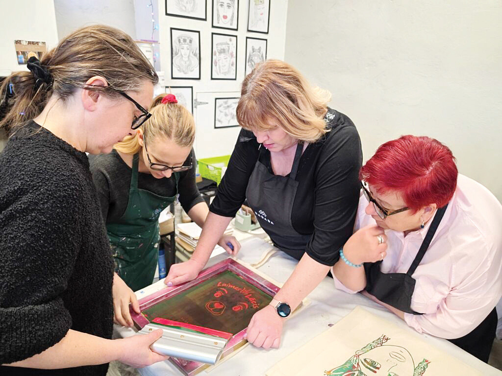Tālāk devāmies uz nelielu piemīlīgu namiņu Skrīveros, Daugavas ielā, kur pirms desmit gadiem skrīveriete Monta Nāburga atvēra darbnīcu ar intriģējošu nosaukumu “RADADA”. Te top latvisks apģērbs un aksesuāri. Interesējāmies, kāpēc nosaukumā ir tik interesanta burtu spēle. Monta stāsta, ka nosaukumā ietverti divi pirmie burti no vārdu salikuma — Radošā darbnīca pie Daugavas. Montas ceļš atpakaļ uz dzimto vietu Skrīveriem atvedis pēc ģimenes izveidošanas un dēlu piedzimšanas. Monta vēlējusies, lai bērni izaug mammas bērnības zemē ar visiem bērniem domātiem labumiem — dzīvi pie upes, dabas baudīšanu, pārlieku nesteidzīgu ritmu un nevajadzīgu stresu. Atgriežoties dzimtajos Skrīveros, Montai bijis jādomā, kā dzīvot tālāk. Uzņēmējdarbības pirmsākumi meklējami 2015. gadā, kad Monta atklāja savu aizraušanos ar tekstila apdrukas tehniku — sietspiedi. Sākumā sava prieka pēc, lai uz apģērba vai audumiem pārnestu savus radītos zīmējumus, bet pavisam drīz interese par viņas radītajiem dizaina risinājumiem radās arī citiem.