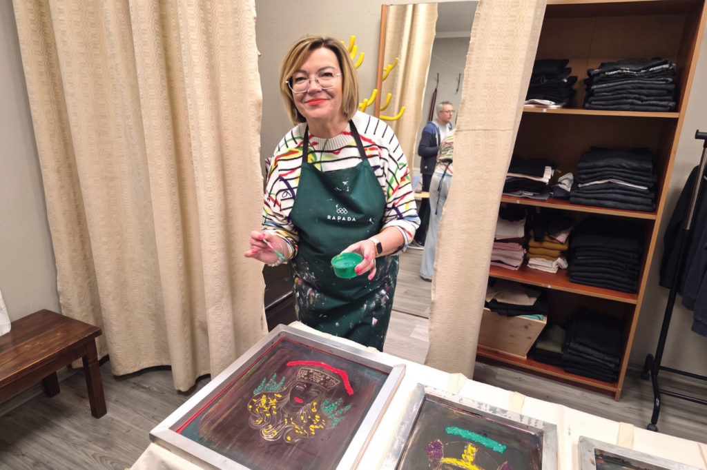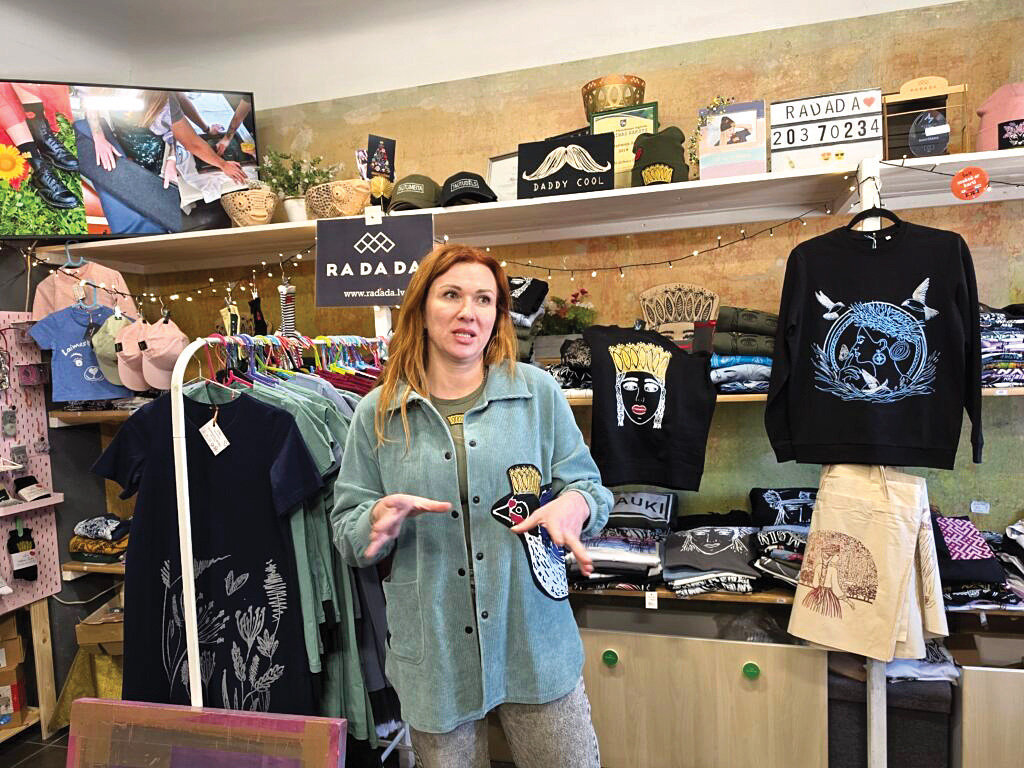 Izbaudījām arī iepirkšanās prieku, jo ikviens apģērbs — T krekls, kleitas, džemperi, bikses, bērnu apģērbs — ir radīts ar māksliniecisku akcentu. Tā nav masu produkcija. Zinot, ka mazpilsētās lielākā daļa dzīvojošo cilvēku netērē naudu jaunam apģērbam, interesējāmies, vai vietējie bieži apmeklē “RADADA”.
