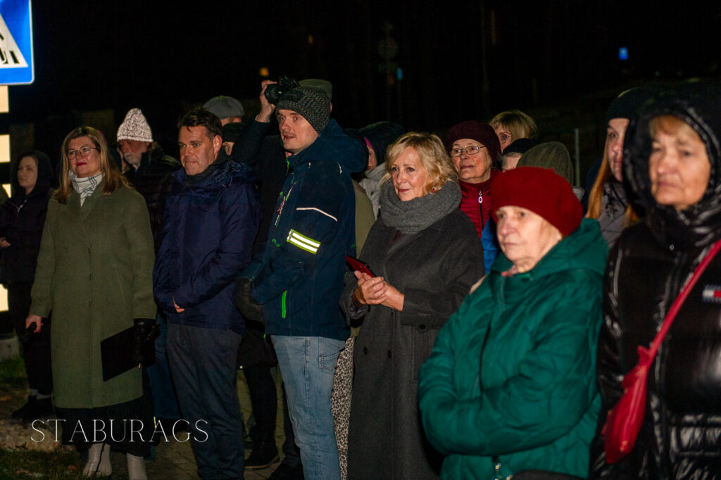 Klātesošos uzrunāja arī Skrīveru iedzīvotāju padomes priekšsēdētājs Edgars Pudzis. “Šodien bieži dzirdam vārdus “Mana Latvija, mana atbildība”. Man šķiet, ka viens no būtiskākajiem atbildības veidiem, ir būt atbildīgam par vidi, kurā mēs dzīvojam. Par šo objektu, vislielākais paldies, un pierādījums tam, ka mēs strādājam ar šo atbildību, ir tieši Santai, kas ideju radīja. No iedzīvotāju puses gribētu teikt, ka šis ir sākums vismaz divām lietām. Pavisam drīz sāksim Daugavas ielas pārvēršanu par pasaku. Tas nenotiks vienā gadā, bet esam aicinājuši iedzīvotājus un uzņēmējus, kas šajā ielā darbojās, jau šogad to izgaismot. Šis būtu sākuma punkts citādiem Skrīveriem, kā ar, tam, lai iedzīvotāji sāktu paši rīkoties. Gribētu iekustināt šo ideju. Lai šis pasākums kļūtu par sākumu daudzām labām lietām un pārmaiņām Skrīveros.”