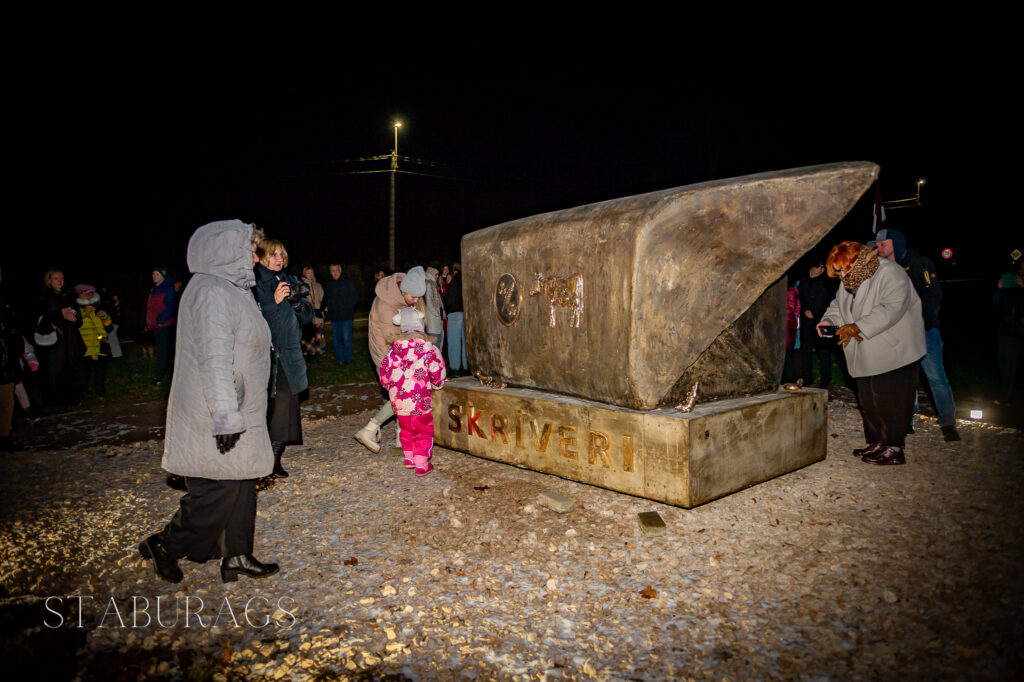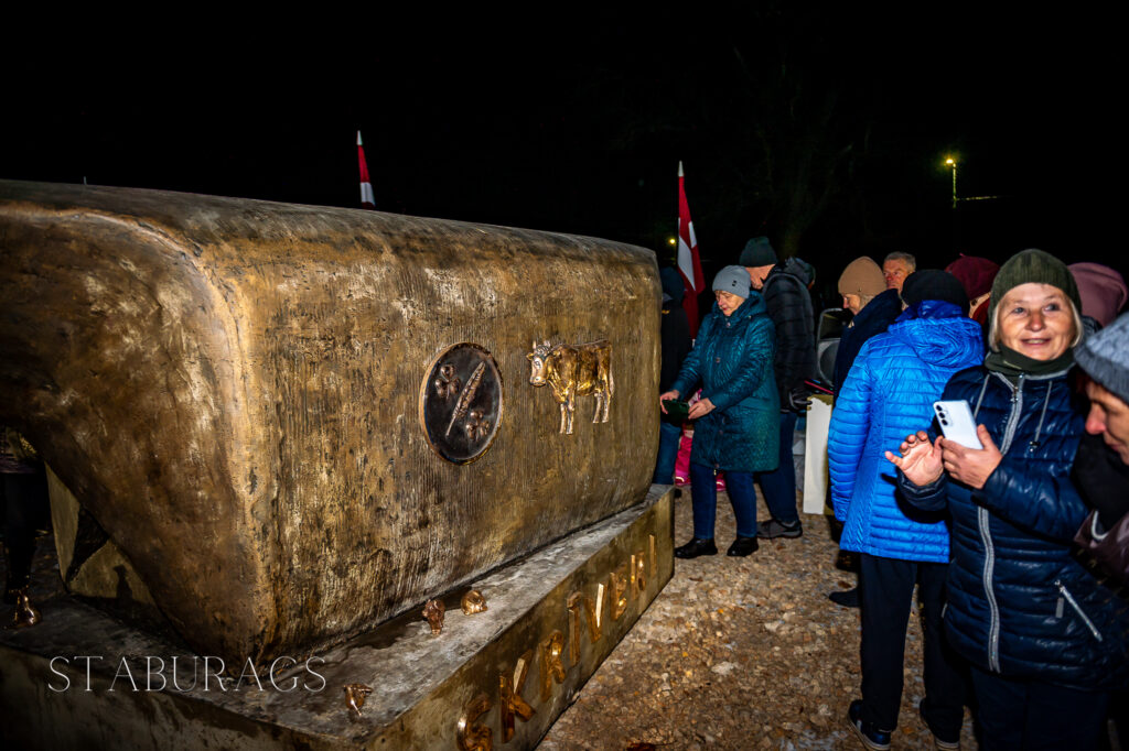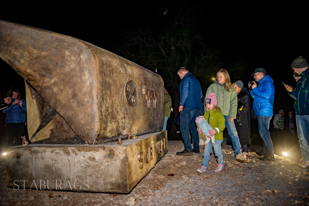 Skrīveros 16. novembra vakarā atklāja vides objektu veltītu konfektei “Gotiņa“.