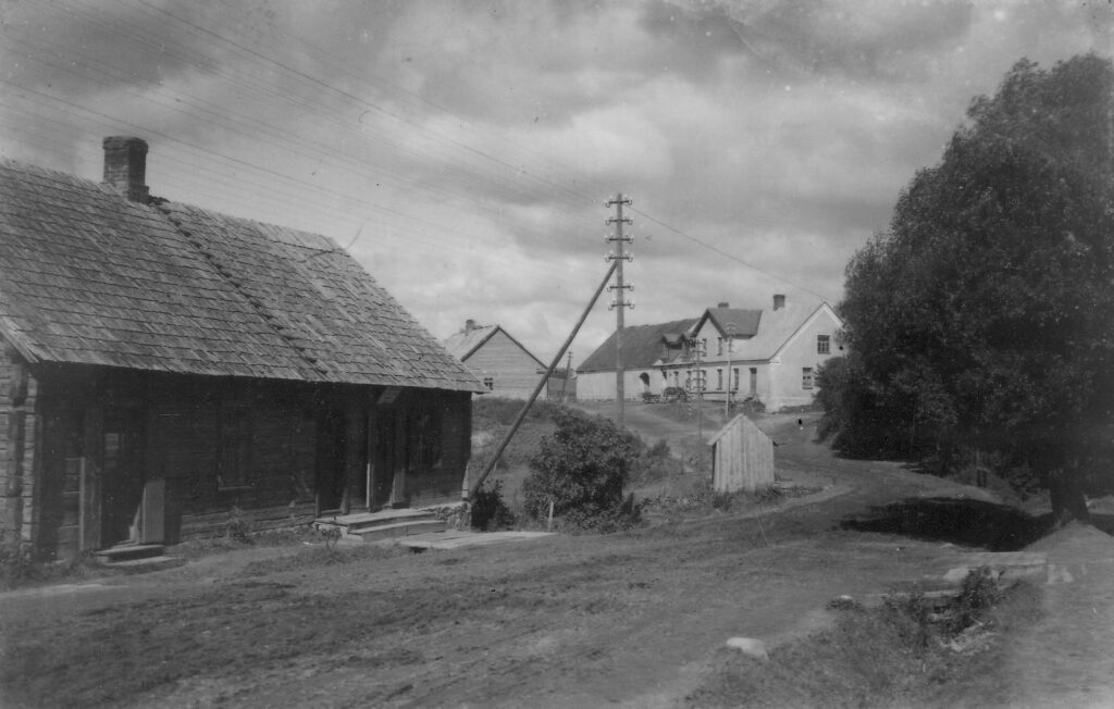 Skats uz Āžu krogu no Neretas un Rokišķu ielu krustojuma puses. 1920. gadi. Pētera Grundmaņa foto. No Daiņa Ormaņa privātkolekcijas.
