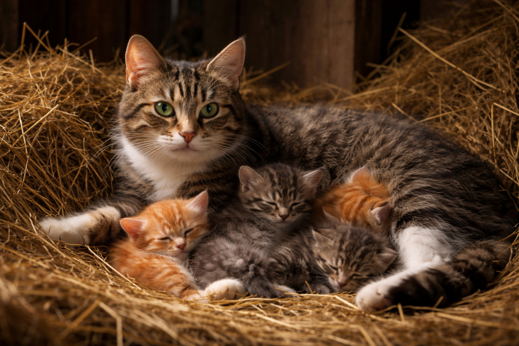 Zelta Mince un trīs kaķēnu cīņa par izdzīvošanu aukstajā ziemā