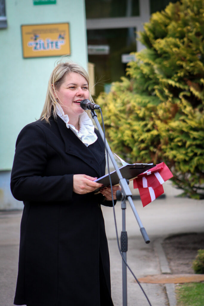 “Karogs ir mūsu valsts simbols. Tas stāsta par mūsu zemi, par cilvēkiem, kuri te dzīvo, strādā un rūpējas viens par otru. Arī mēs šeit — “Zīlītē” — katru dienu veidojam vidi, kur bērni aug gudri, droši un sirsnīgi. Aizkraukles pirmsskolas izglītības iestāde “Zīlīte” ir vieta, kur sākas bērnu pirmie lielie sapņi. Šeit viņi apgūst ne tikai zināšanas, bet arī cieņu, draudzību un mīlestību pret savu zemi. Un šis karoga masts būs kā simbols tam, ka mēs šīs vērtības turam augstu — redzamas un stipras. Karogs, ko šodien redzēsiet mastā, ir kā zīme, ka mēs visi piederam šai vietai un savai valstij. Tas mums atgādina būt draudzīgiem, izpalīdzīgiem un drosmīgiem darīt labu. Katru reizi, kad nāksim uz pirmsskolu, paskatīsimies uz plīvojošo karogu, atcerēsimies, cik svarīgi ir būt kopā un rūpēties vienam par otru un sapņot lielus sapņus,” ar šiem vārdiem svinīgo karoga masta atklāšanas pasākumu iesāka PII “Zīlīte” vadītāja Liene Bešmenova. Pirms jaunā karoga pacelšanas ar cieņu tika noņemts iestādes vecais karogs, kas, plīvojot pie ieejas durvīm, pieredzējis daudz bērnu smieklu, skaistu brīžu, vērojis gadalaiku un paaudžu maiņu. Tas tika rūpīgi salocīts un tiks noglabāts piemiņai.