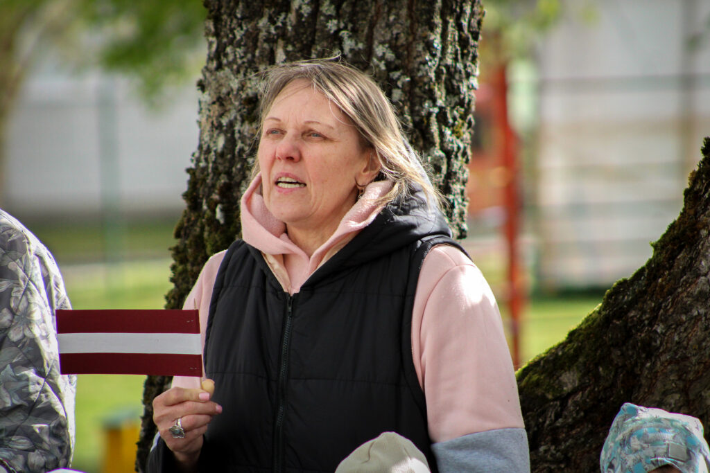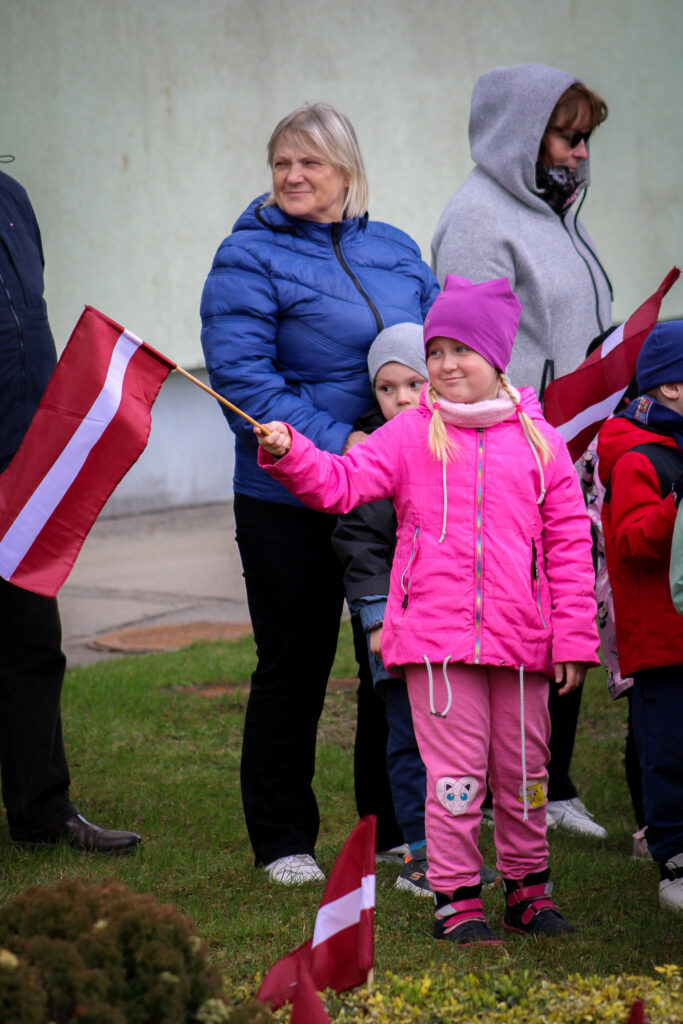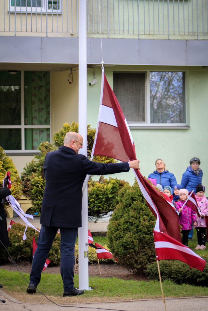 Pasākumu apmeklēja arī Aizkraukles novada domes priekšsēdētājs Leons Līdums, kuram bija gods svinīgi pacelt jauno karogu. Sarkanbaltsarkanais, brīvi plīvojot vējā, ieņēma savu goda vietu masta augšgalā.
