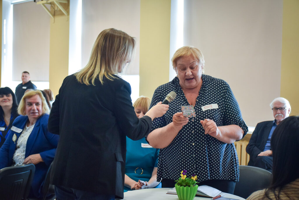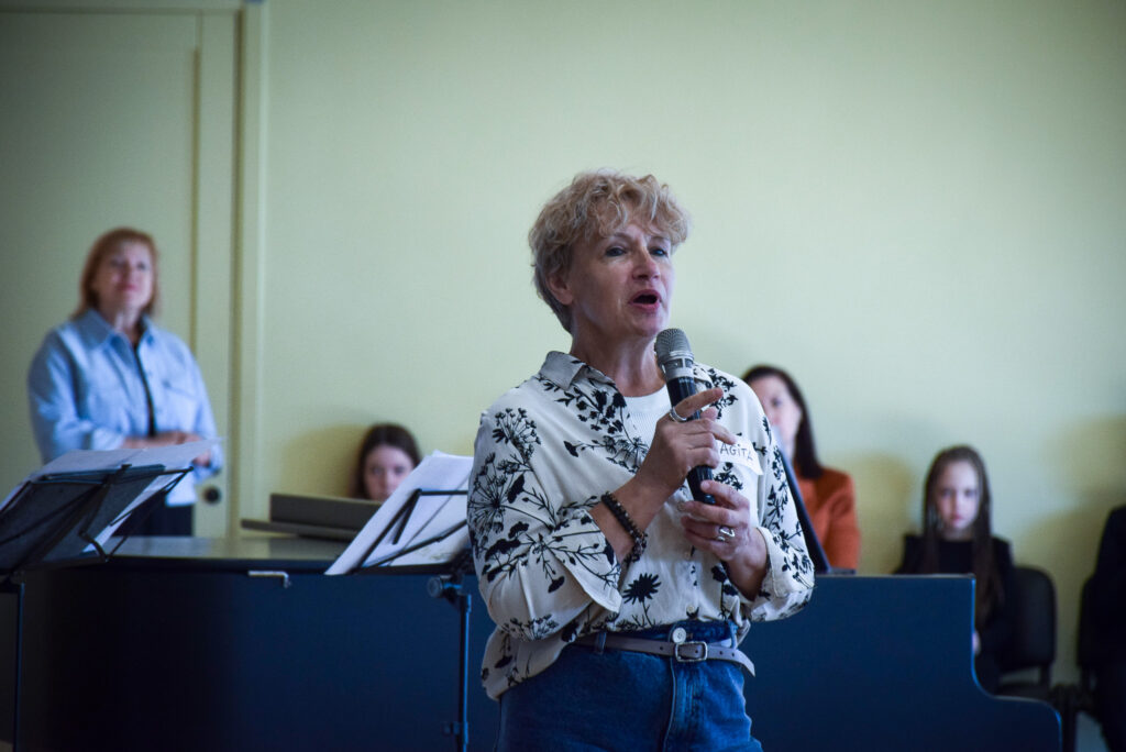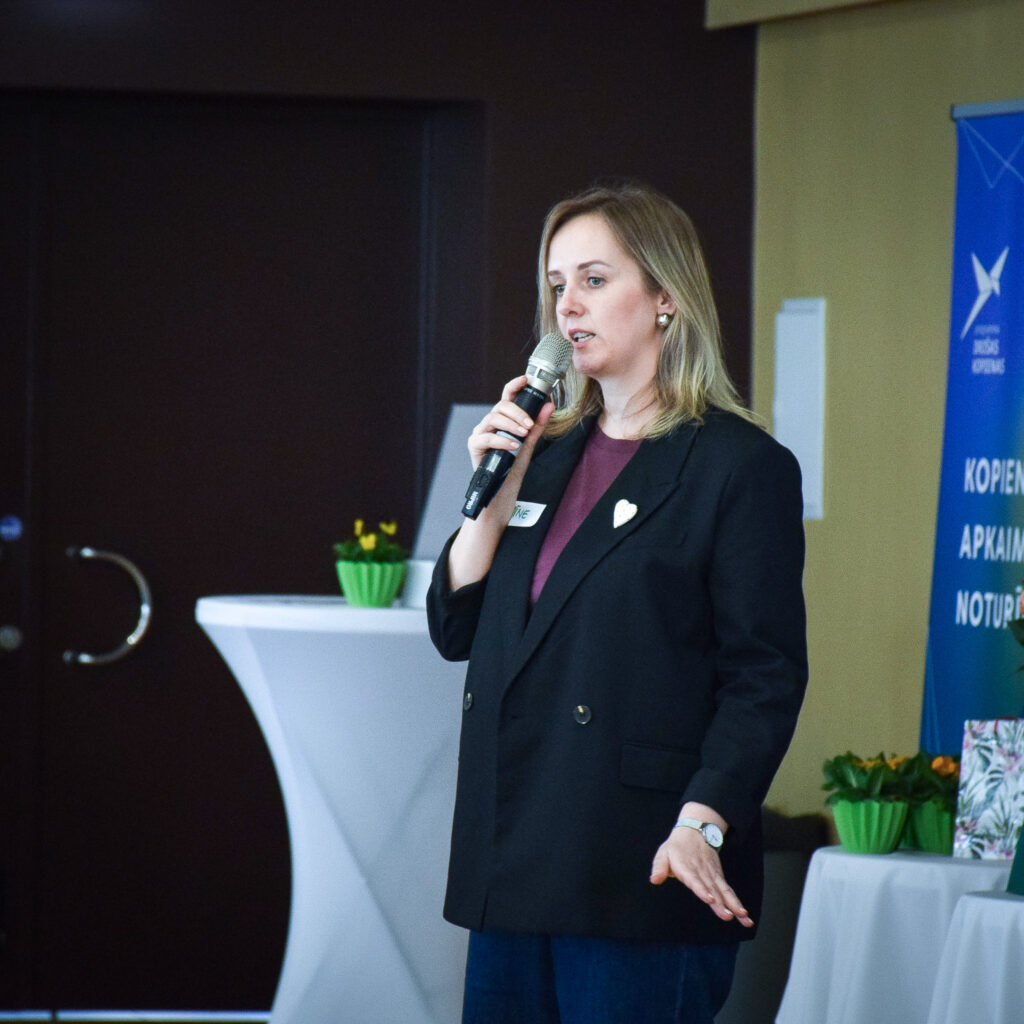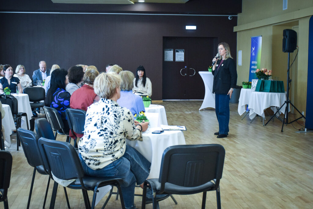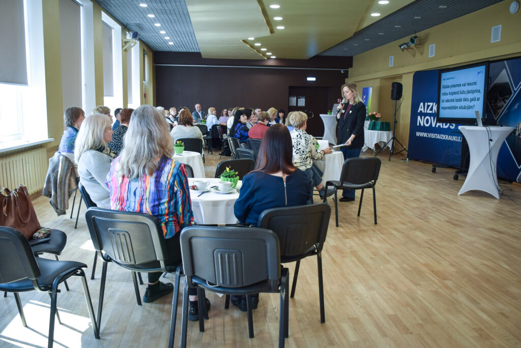 Sanākušos uzrunāja arī Vidusdaugavas NVO centra vadītāja Agita Pleiko no Jēkabpils: “Jūs šodien esat atnākuši un esat gatavi domāt par noturīgām un drošām kopienām, par to, kā veidot drošas kopienas Aizkraukles novadā.