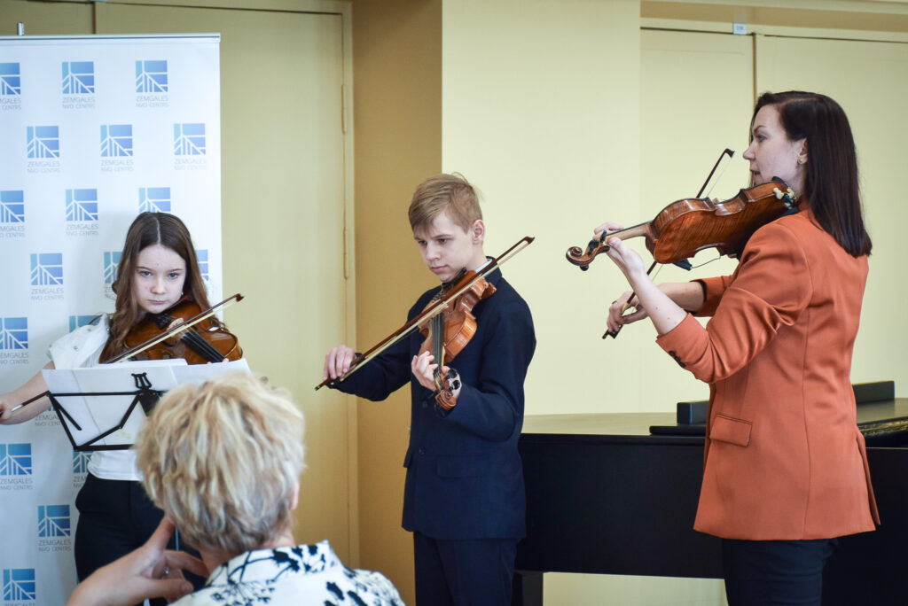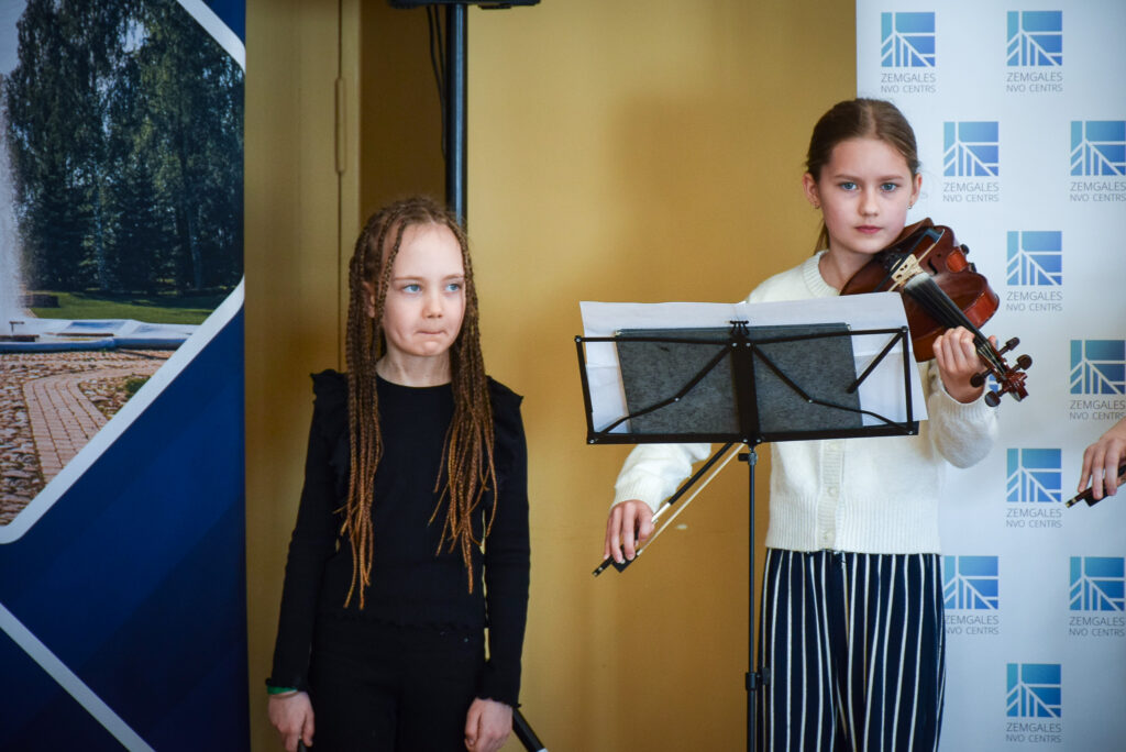 Muzikālu sveicienu foruma dalībniekiem sniedza P. Barisona Aizkraukles Mūzikas skolas vijolnieku ansamblis Līgas Butānes vadībā.