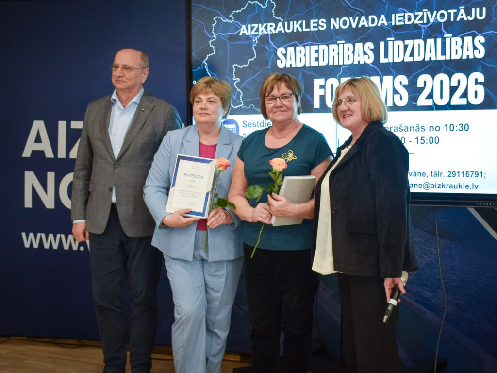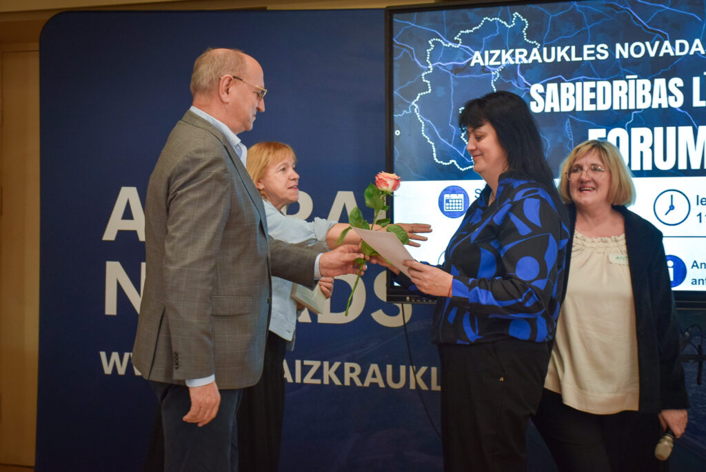 Foruma noslēgumā tika sveiktas aktīvākās Aizkraukles novada nevalstiskās organizācijas. Tāpat atzinīgi vārdi tika teikti tām biedrībām, kuras izveidotas nesen: “Vīgantes senstāstiem” Staburagā, “Zelta gailenēm” Daudzesē un “Ritma dzirkstij” Jaunjelgavā.